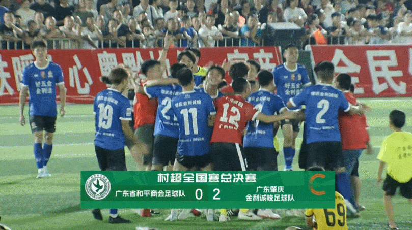 8月23日晚,2025年“村超”全国赛总决赛上,广东肇庆金利诚峻足球队以2∶0战胜广东省和平商会足球队,一举夺得2025“村超”全国总冠军!