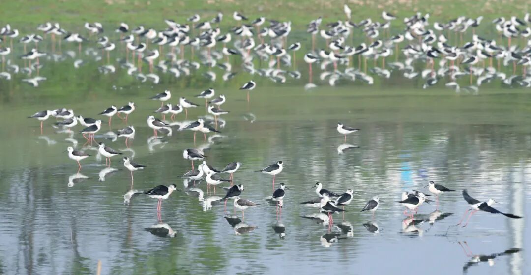 黑翅长脚鹬成群。惠州日报记者朱金赞 摄