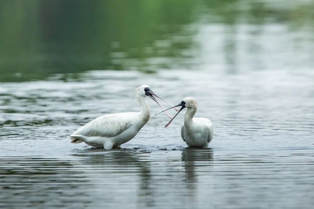 惠东县沿海滩涂的黑脸琵鹭。图片由惠州市生态环境局提供