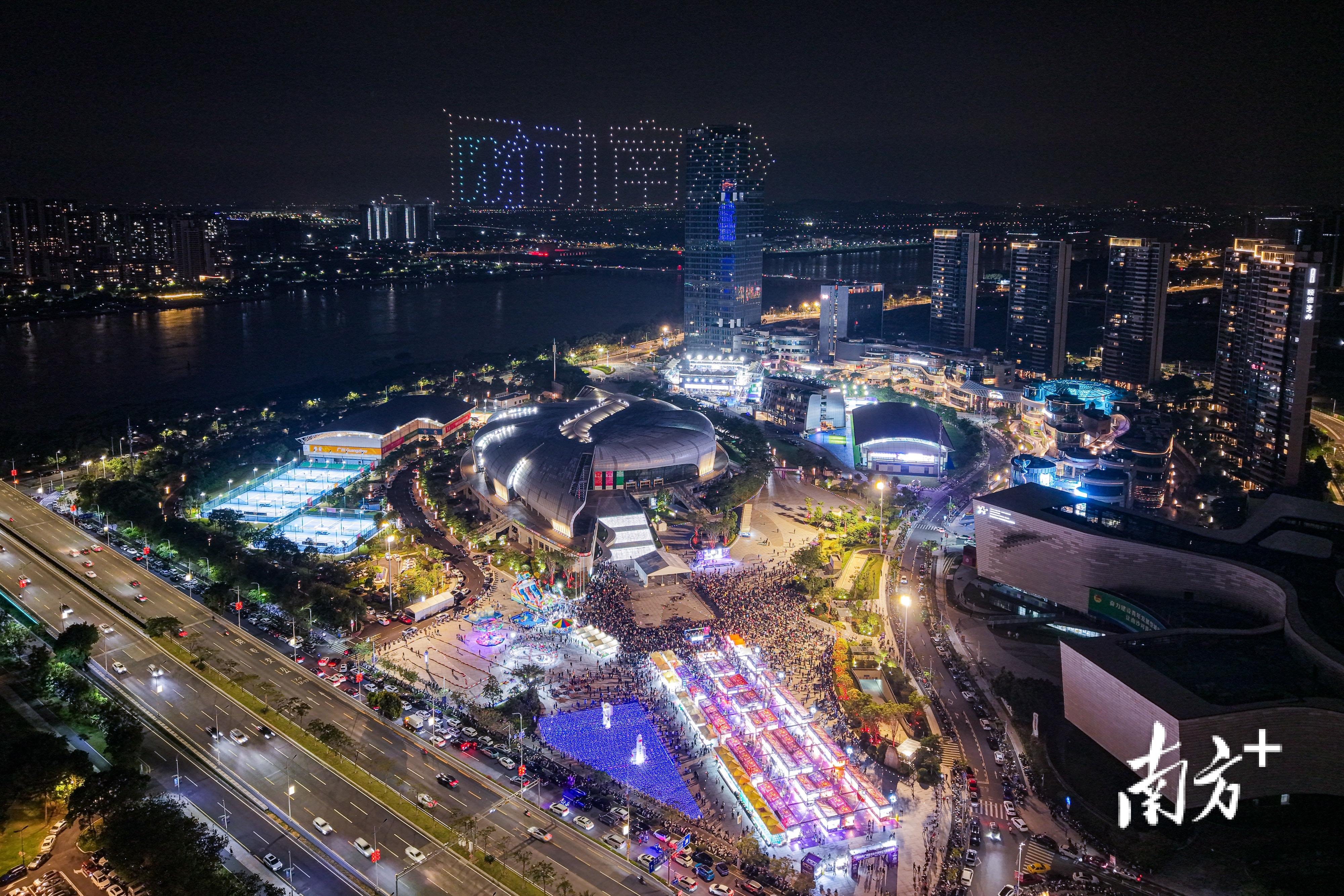 今年“广网”期间举办的嘉年华活动,由球馆延伸至新建的南沙体育广场,总面积约3万平方米,设有120余个摊位,涵盖粤港澳特色小吃、农产品、非遗餐饮等品类,融合舞台演出、灯光秀、无人机表演、鱼灯巡游、亲子互动等项目,形成“观赛+游乐”一站式体验。