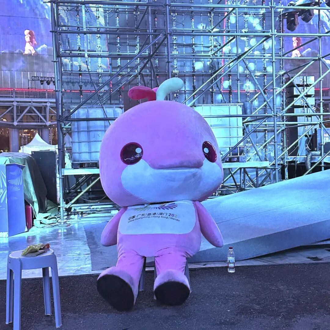 这批要生产的玩偶,来自刘平云的奇思妙想。他是广州美术学院视觉艺术设计学院院长,曾参与设计了北京冬奥会吉祥物冰墩墩。起初,刘平云很担心把吉祥物设计成“可以吃的东西”,因此否决了包括蒸饺、虾仁等方案,最终选择了肯定不会被“吃”的中华白海豚作为原型。