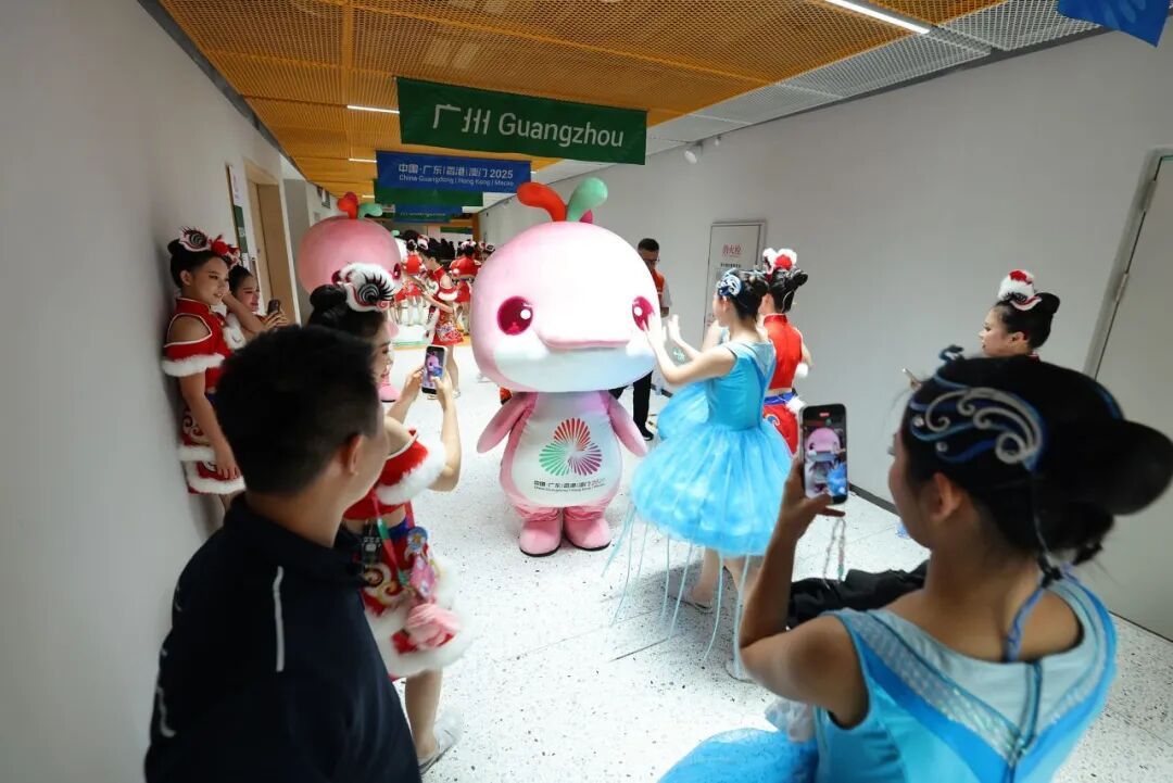 2025年11月9日,广州,演员们和全运会吉祥物拍照。(视觉中国/图)