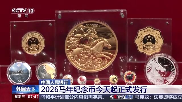 今天(26日)起,中国人民银行正式发行2026中国丙午(马)年贵金属纪念币一套,该套贵金属纪念币共11枚,其中金质纪念币6枚,银质纪念币4枚,铂质纪念币1枚,均为中华人民共和国法定货币。
