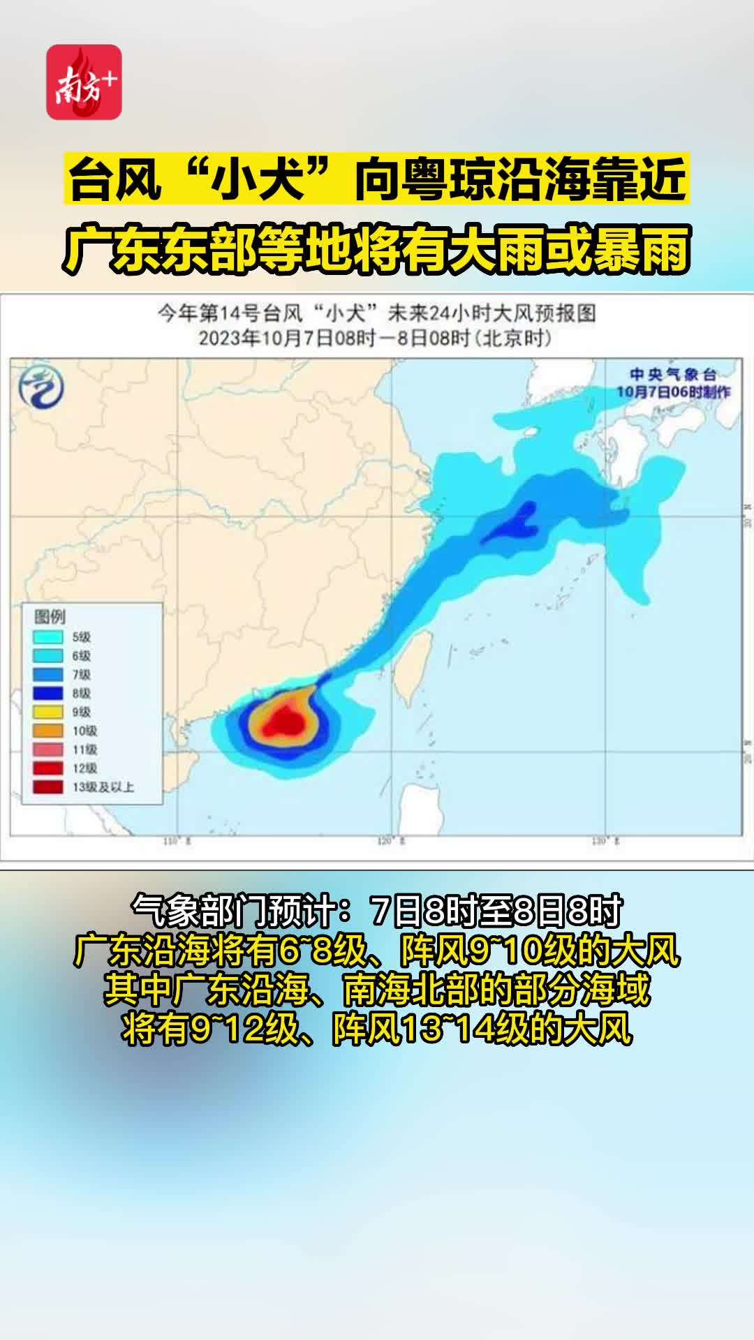 台风“小犬”向粤琼沿海靠近,广东东部等地将有大雨或暴雨