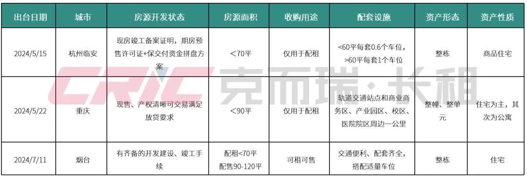早期存量收购政策普遍要求收购资产为现房或达到竣备条件,且以整栋整单元的住宅物业为主,面积控制在70平方米或90平方米以内,并主要用于配租型保障房用途。此外,对项目周边轨道交通、生活配套设施等均有特定要求。
