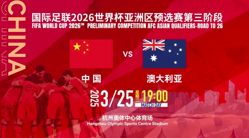 3月25日晚,国足将在杭州迎来世预赛亚洲区18强赛C组第八轮比赛,对阵实力强劲的澳大利亚队。