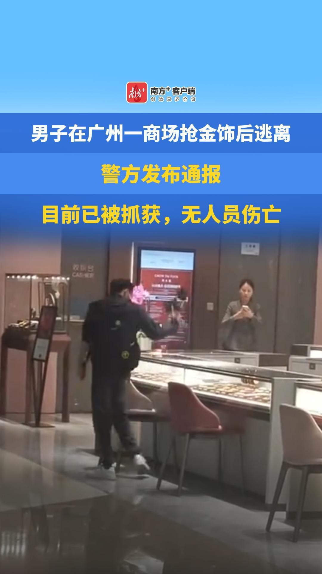 广州男子商场抢金饰后逃离,警方发布通报目前已被抓获,无人员伤亡