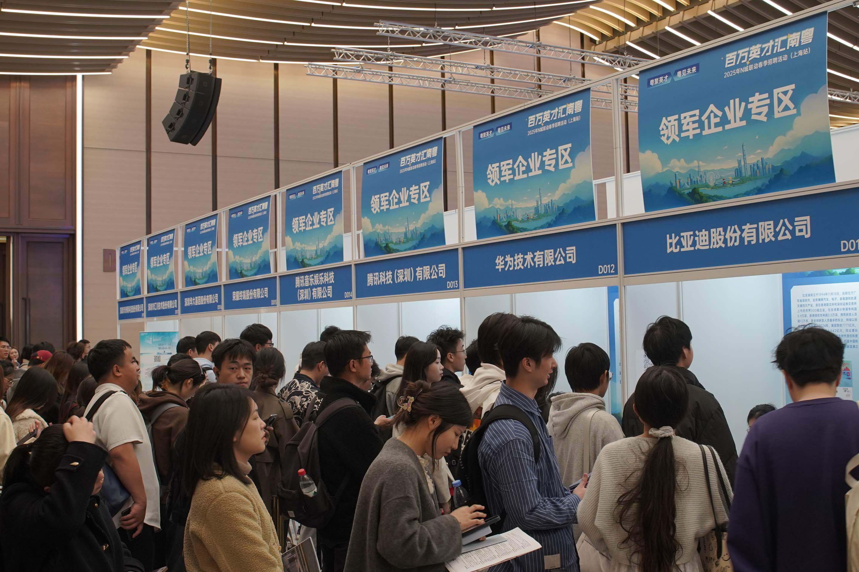此次广东省以深圳为主力,携华为、腾讯、比亚迪等751家单位来沪,组成“顶配引才团”,岗位总数3.5万个,其中年薪50万—100万的岗位超4000个,100万以上的岗位超800个。同时以AI简历诊断、AI职业能力测评、腾讯AI职业照拍摄等体验项目,创新实现数字化招聘,为求职者提供一站式服务。