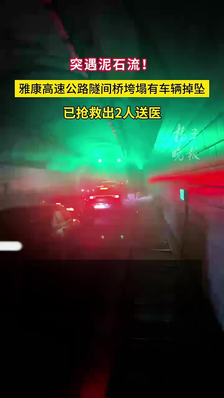 突遇泥石流!雅康高速公路隧间桥垮塌有车辆掉坠,已抢救出2人送医