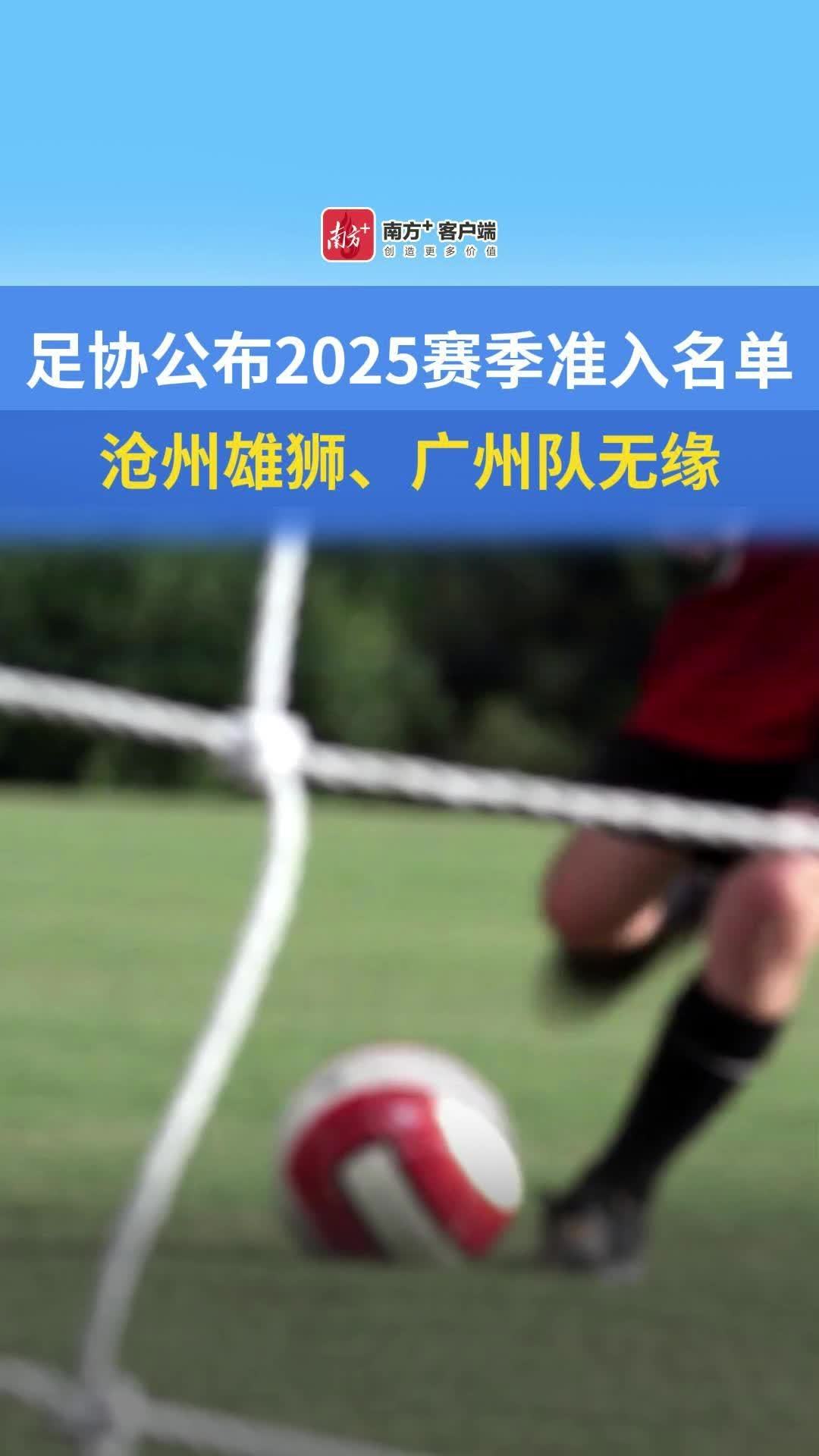 1月6日下午,中国足球协会官网发布《中国足球协会关于公布上海海港等49家俱乐部获得2025赛季职业联赛准入资格的通知》,通知中公布了获得2025赛季职业联赛准入资格的俱乐部名单,沧州雄狮、广州队及湖南湘涛3家俱乐部未上榜,这意味着广州队将无法参加新赛季的中甲联赛。
