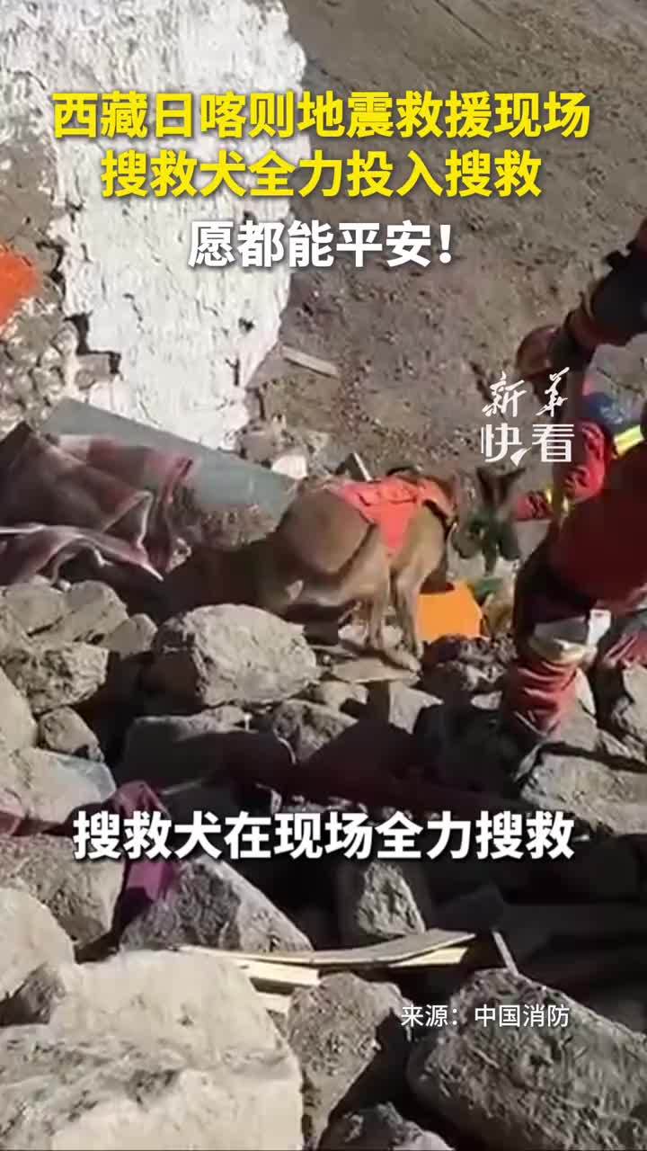 西藏日喀则地震救援现场,搜救犬全力投入搜救,注意安全!愿平安!