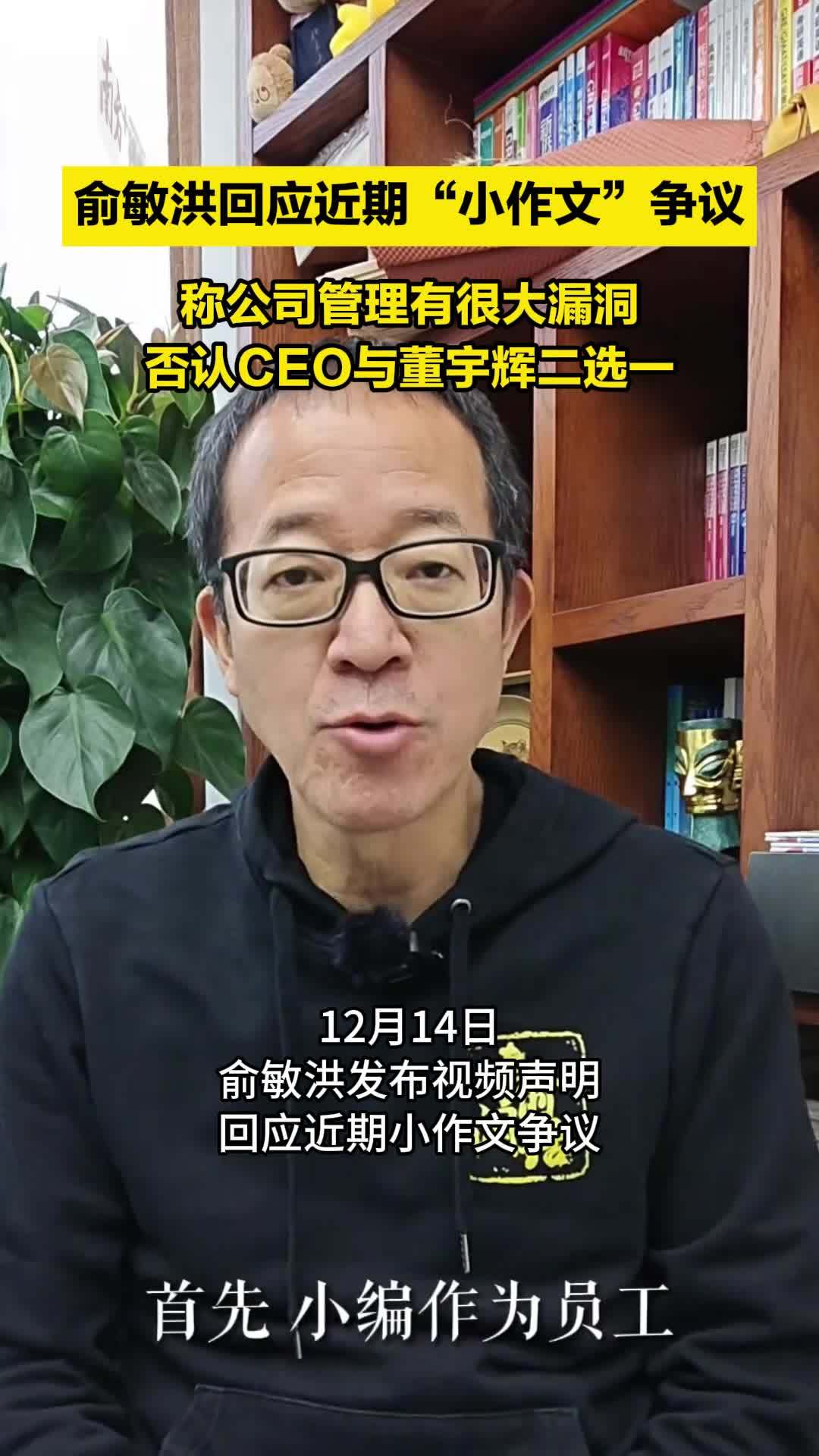 俞敏洪回应近期小作文争议,称公司管理有很大漏洞