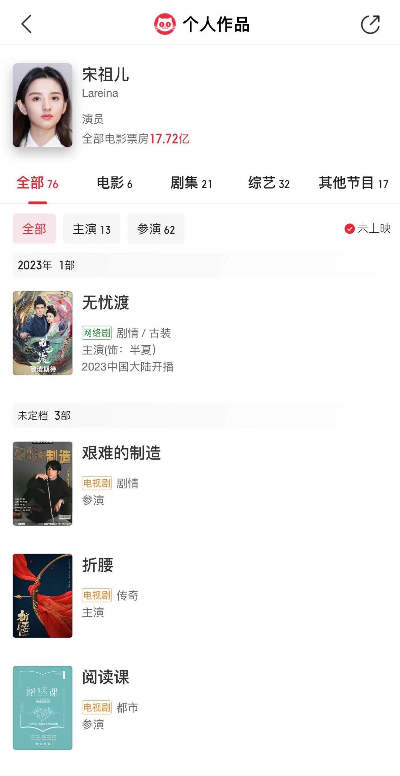 据猫眼专业版显示,宋祖儿目前还有《无忧渡》《艰难的制造》《折腰》《阅读课》4部待播剧未播。网友们纷纷表示,关注事件进展,希望当事人及早回应,也希望相关部门查清事实真相。