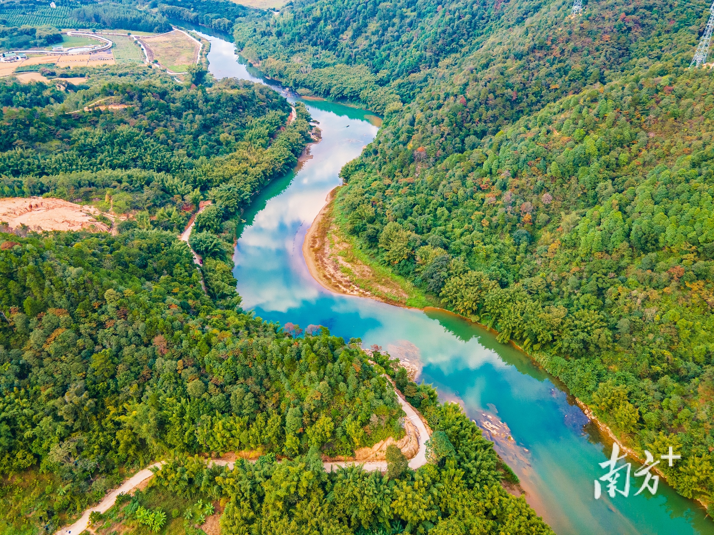 河畅水清,岸绿景美,从天空的角度鸟瞰龙颈段的滨江河,宛如一条玉带在层层叠叠的山峦中流淌。成计福 摄