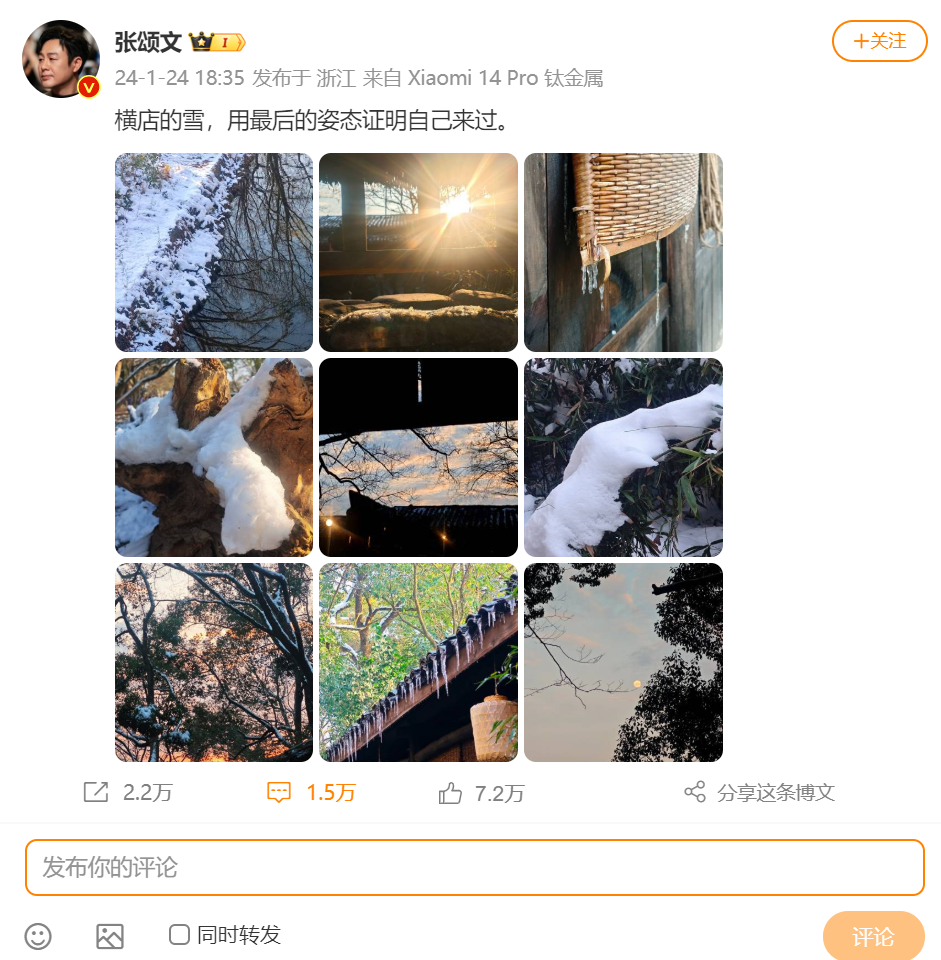 连远在横店拍戏的韶关老乡张颂文,也在与网友微博互动时为“家乡雪”打call,邀请广东的朋友到韶关看雪。