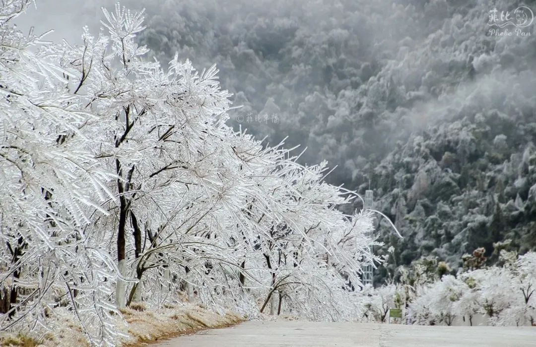 而行走山间,目光所及之处皆是银装素裹;穿行薄雾,如同身处梦幻的冰雪世界。