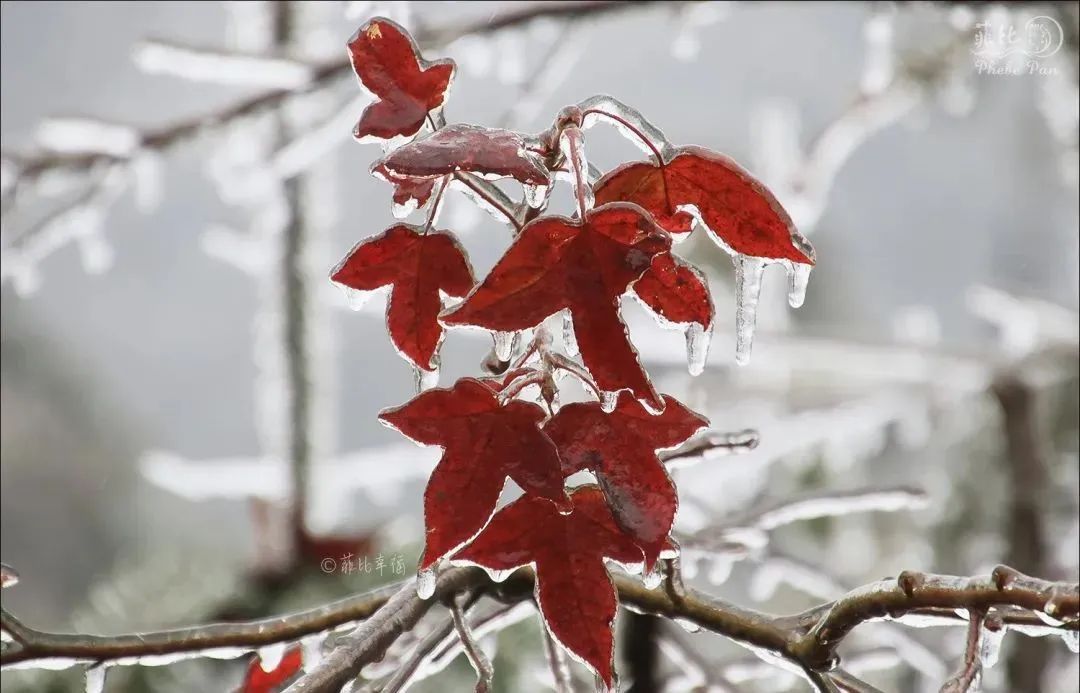 在新丰岭南红叶世界,山林都披上了一层美丽的冰挂“外衣”。