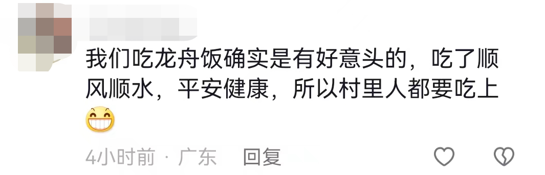 来自鸦岗的乡亲刘女士表示:“时隔三年又吃到丰盛的龙舟饭,感觉重获这样的幸福太不容易了。虽然这次龙舟饭开席前遭遇了暴雨,但是丝毫没有影响我们一家享受龙舟宴的心情,见到了蚌湖的老朋友,尝到了美味,虽然过程有点曲折,但是很开心。”