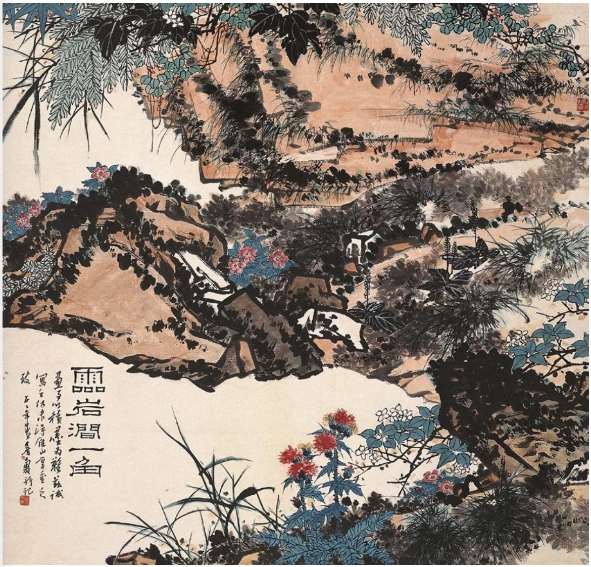 《灵岩涧一角》 潘天寿 1955 年 120×119.7cm 纸本设色 中国美术馆藏