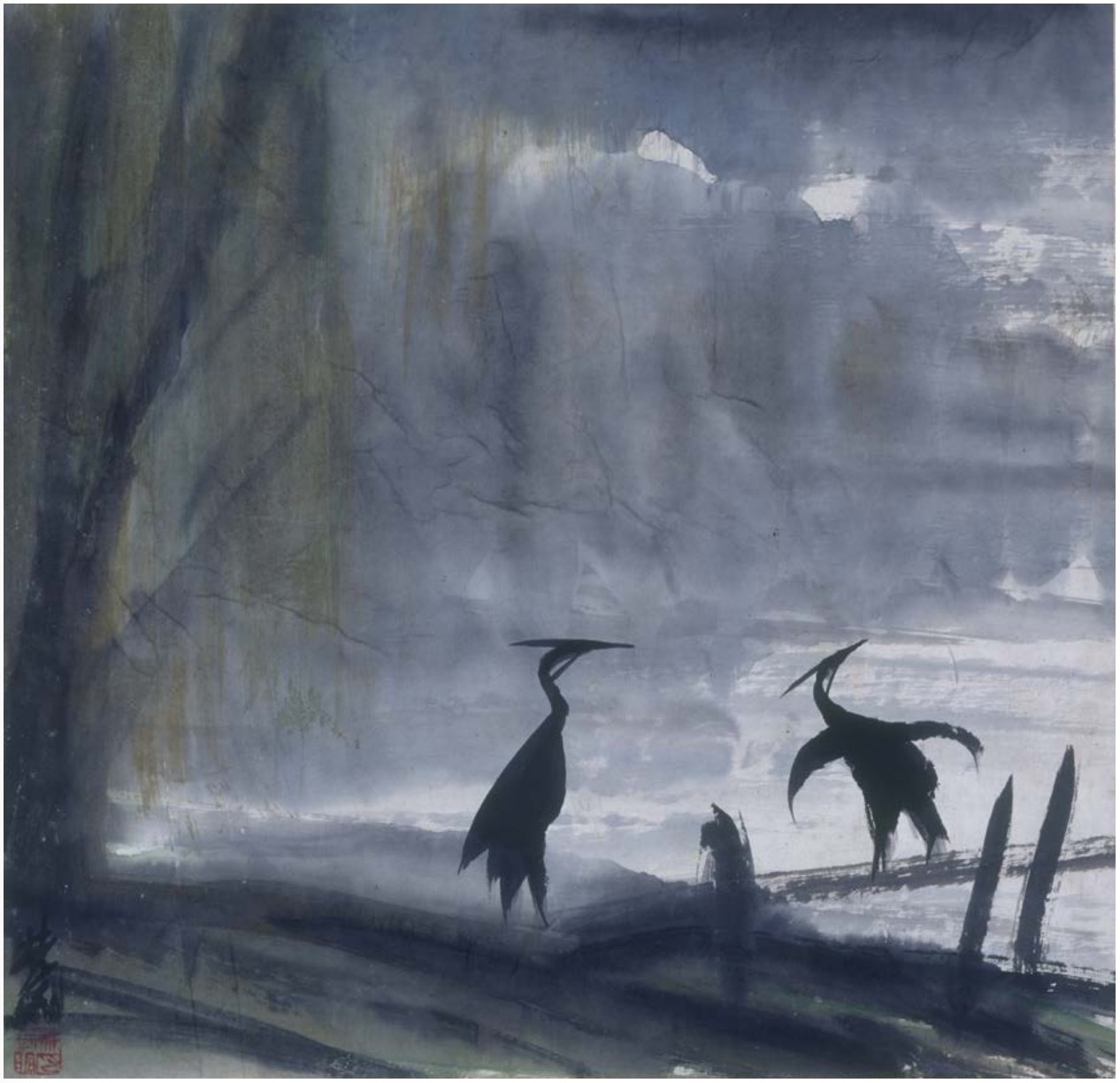 《河边双鹤》 林风眠 1930 年代中期 33.3×34.5cm 纸本设色 香港艺术馆藏品