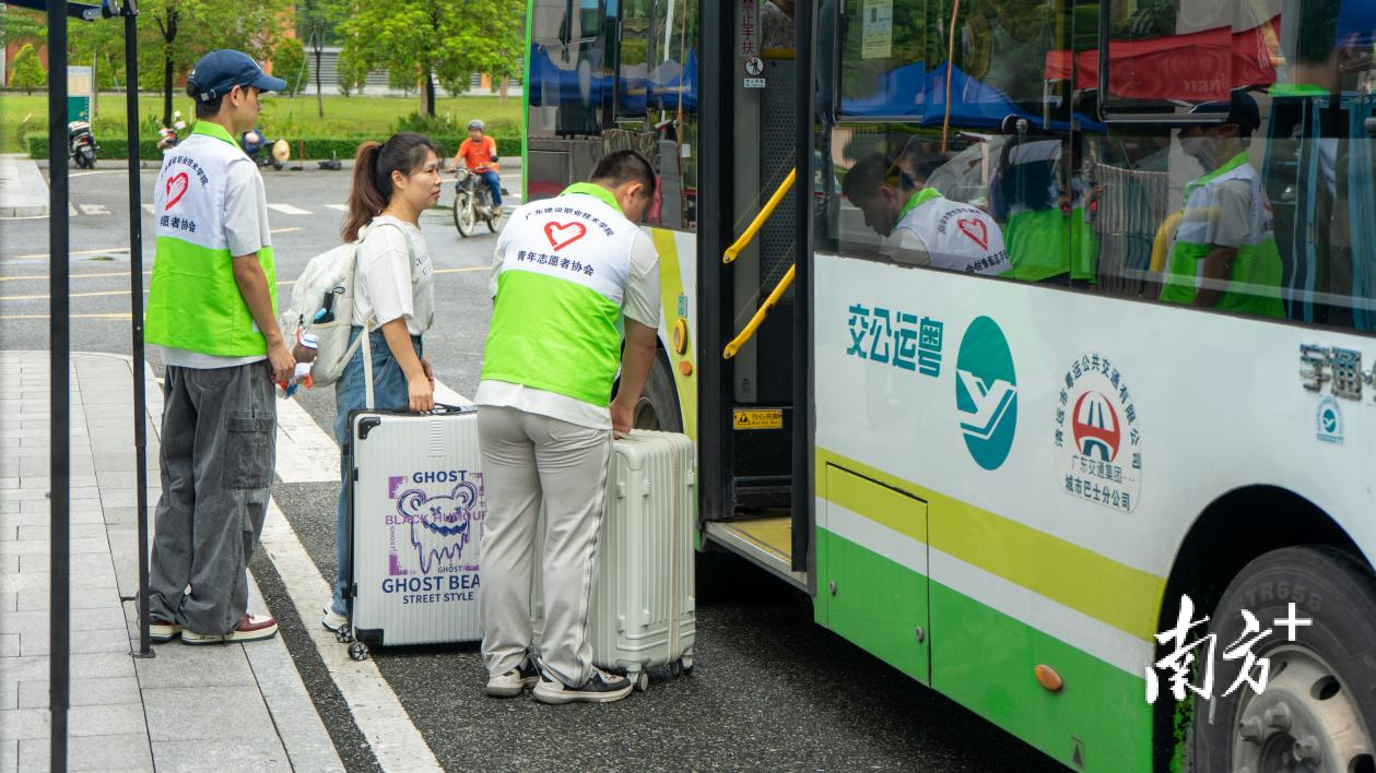 学院提供从校门接驳点到报到点的公交车接送服务。通讯员供图