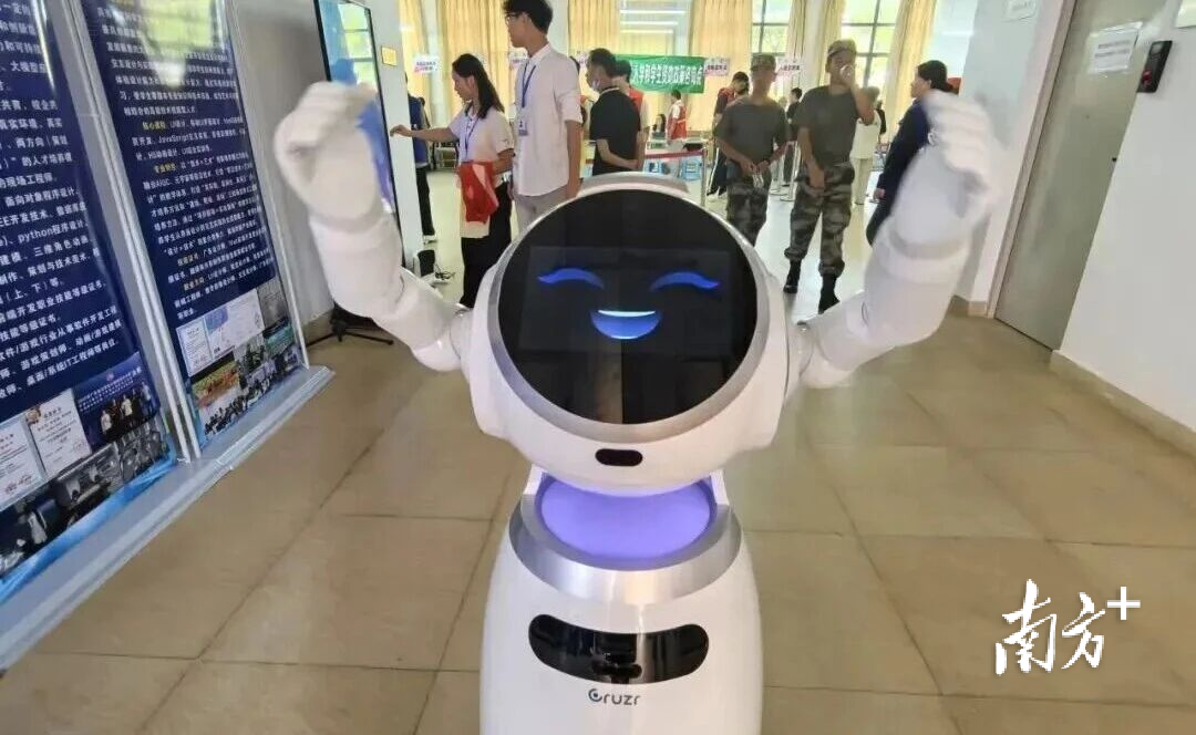 机器人“建小信”在新生报到点进行现场导览。通讯员供图