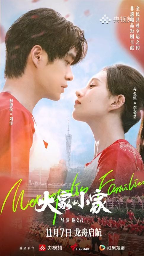 《大家小家》不仅是一部关于龙舟的精品剧集,更是一部关于个人成长、文化传承与城市归属感的时代小品。11月7日,该剧在央视频、广东体育频道、红果短剧等平台同步首播,唱响以龙舟为笔、以珠江为卷的热血时代之歌。