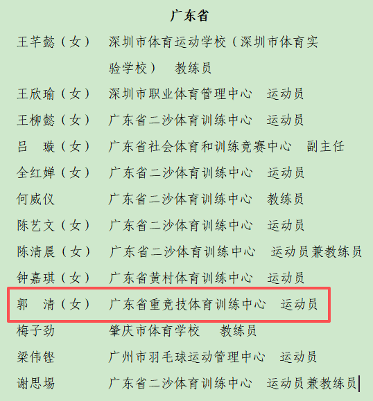 奥运银牌获得者郭清,上榜全国体育系统先进个人拟表彰名单