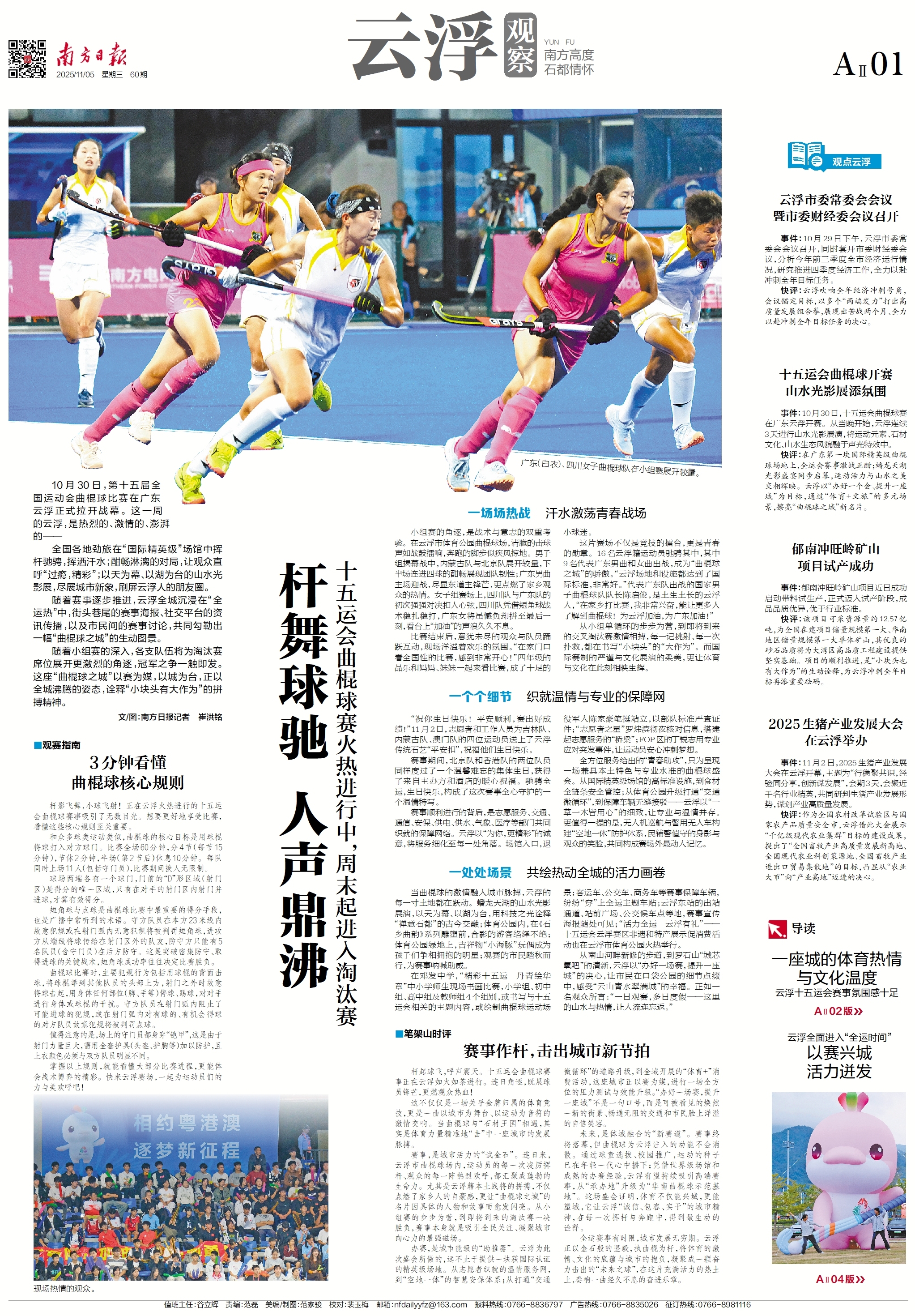 10月30日,第十五届全国运动会曲棍球比赛在广东云浮正式拉开战幕。这一周的云浮,是热烈的、激情的、澎湃的——