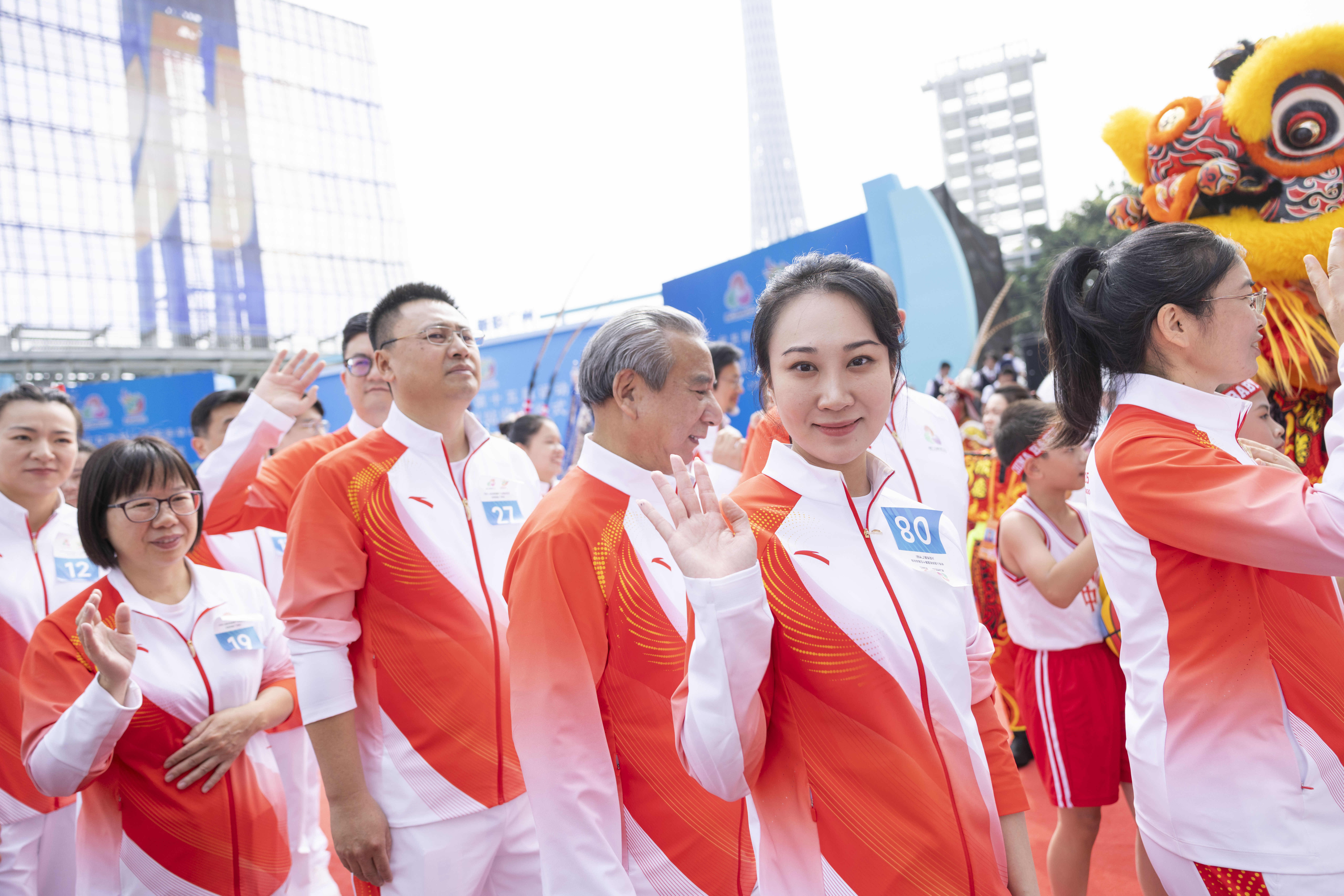2025年11月2日,越秀公园镇海楼,第十五届全国运动会火炬传递广州站起跑仪式现场。