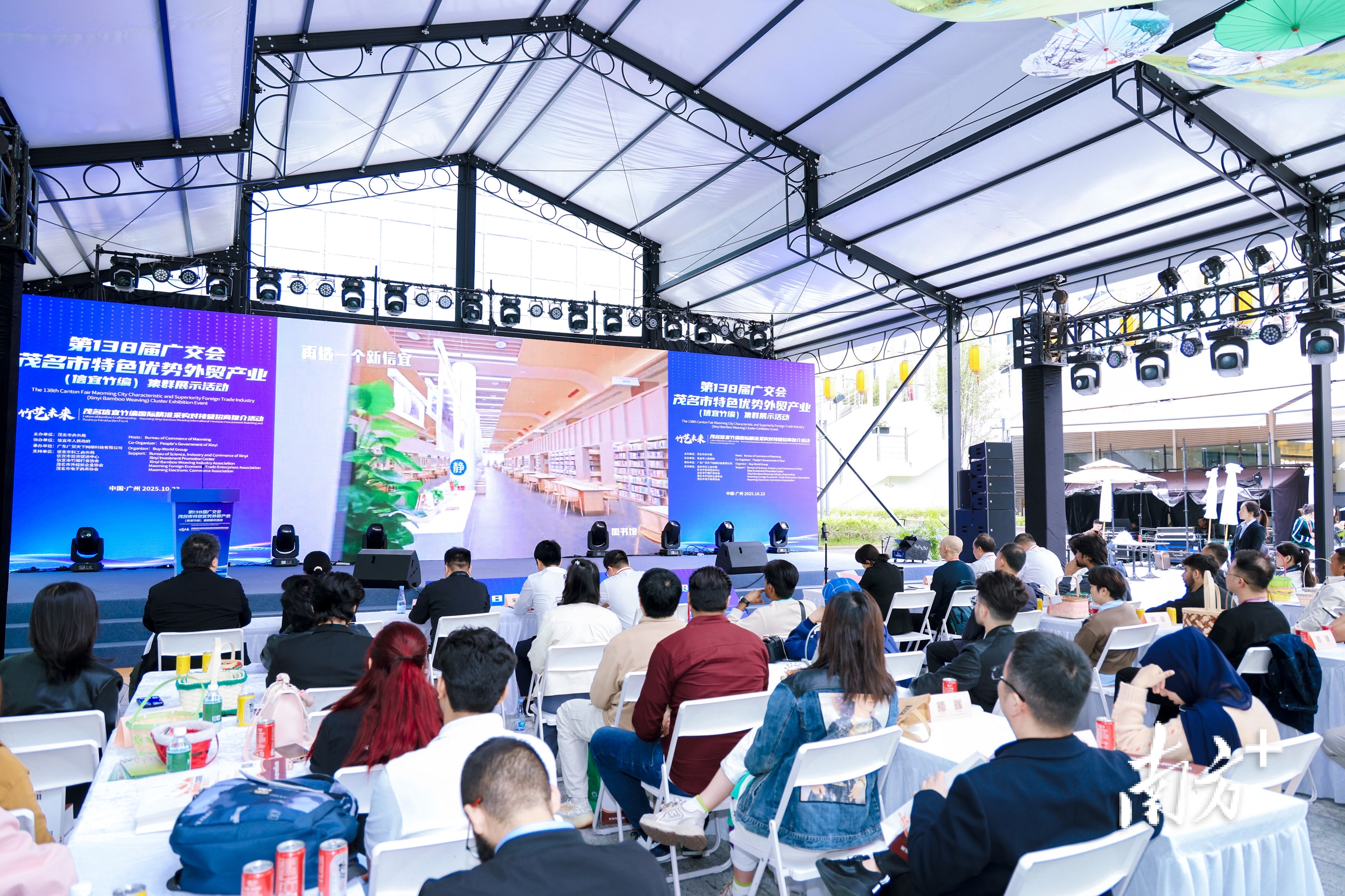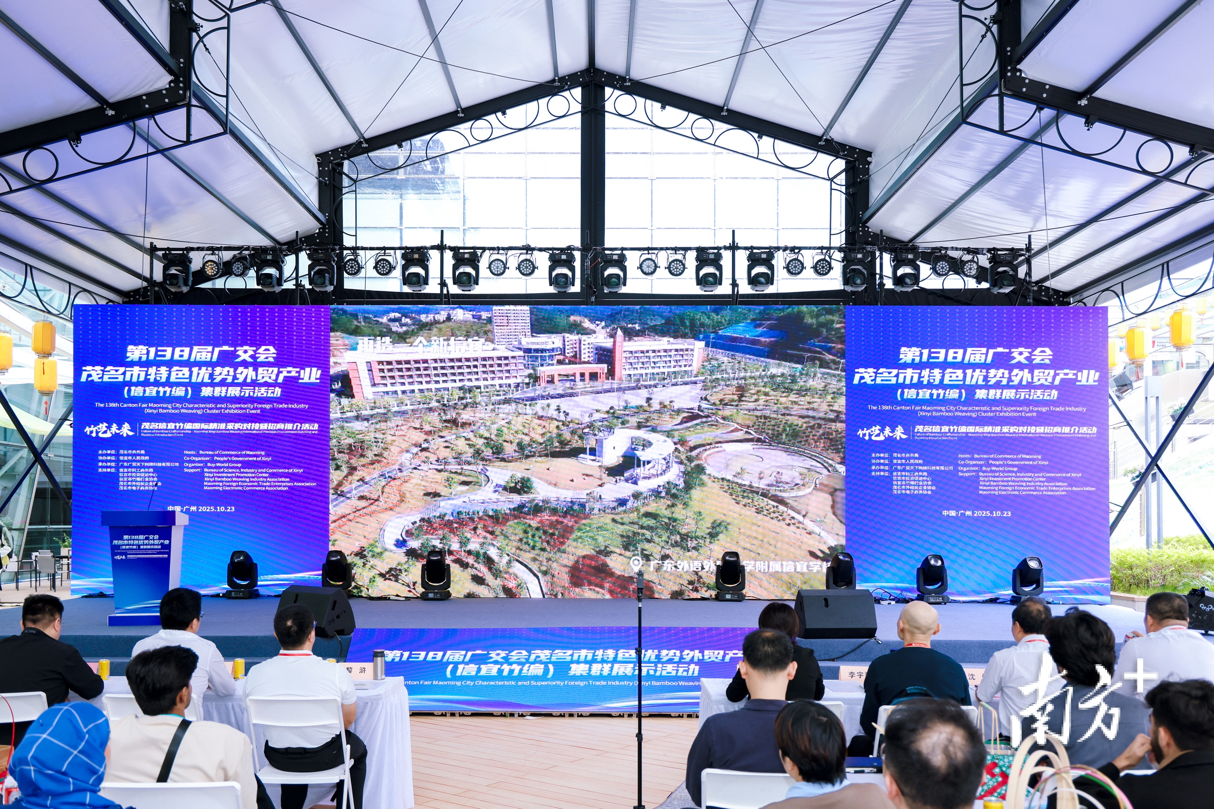 10月23日,第138届广交会A区中庭广场,一场名为“竹艺未来”的茂名信宜竹编国际精准采购对接暨招商推介活动在此举行。来自欧洲、美洲、中东、东南亚等地区的30多名国际采购商穿梭在各色竹编产品之间,对眼前这些兼具传统技艺与现代设计的作品表现出浓厚兴趣。