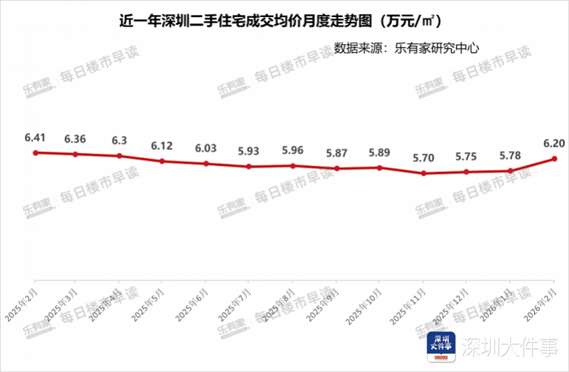 乐有家研究中心2月27日数据显示,2月深圳二手住宅成交均价达6.2万元/㎡,环比上涨7.3%,连续3个月上涨。
