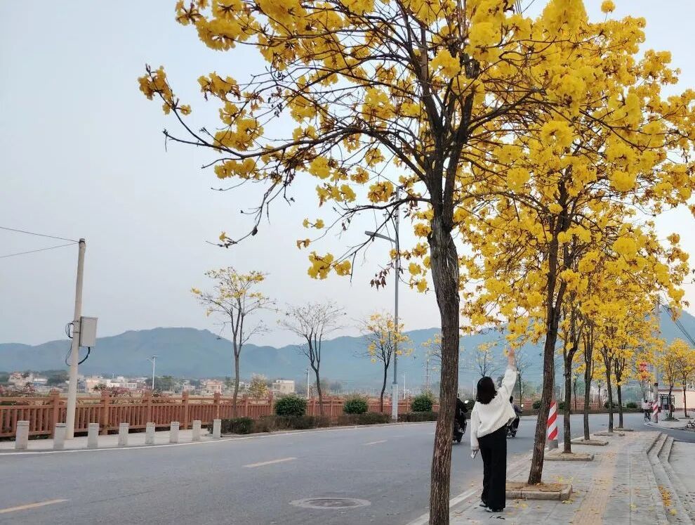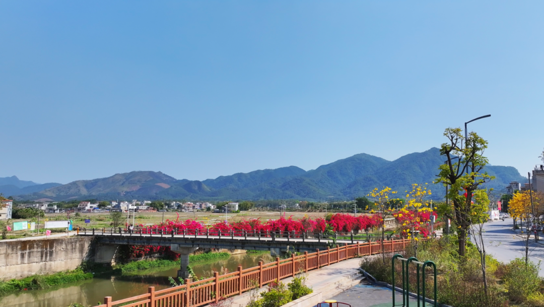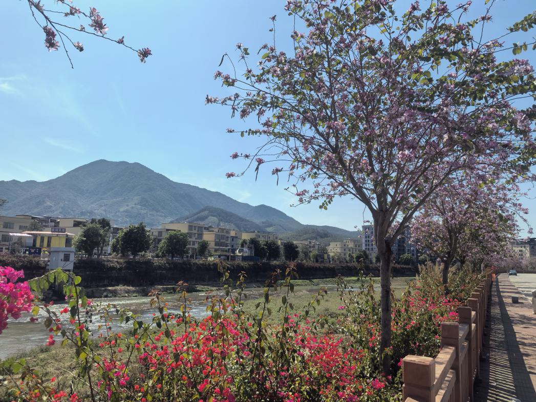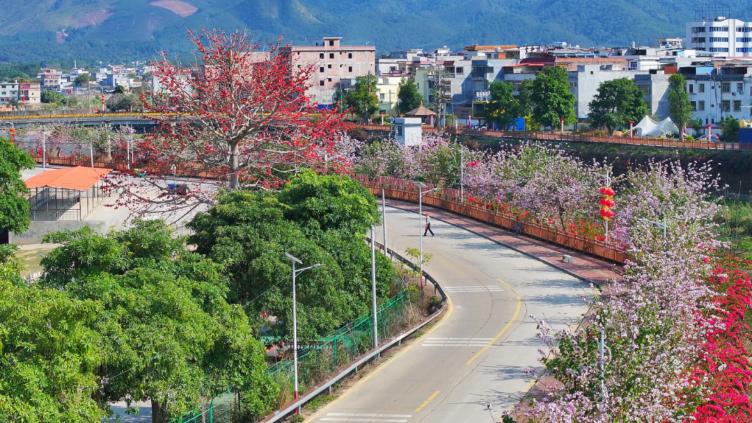 统筹山水林田等生态要素,积极盘活圩镇及周边村庄道路两旁、房前屋后等边角地、闲置地进行绿化提升,精心选用黄花风铃木、宫粉紫荆、三角梅、细叶紫薇、紫花杜鹃球等观赏性树种数千株,与原有的木棉花、火焰树、落羽杉等树木协调统一、错落有致,共同勾勒出“水清岸绿、花颤春柔”的生动画卷,不断擦亮绿美乡村生态底色。