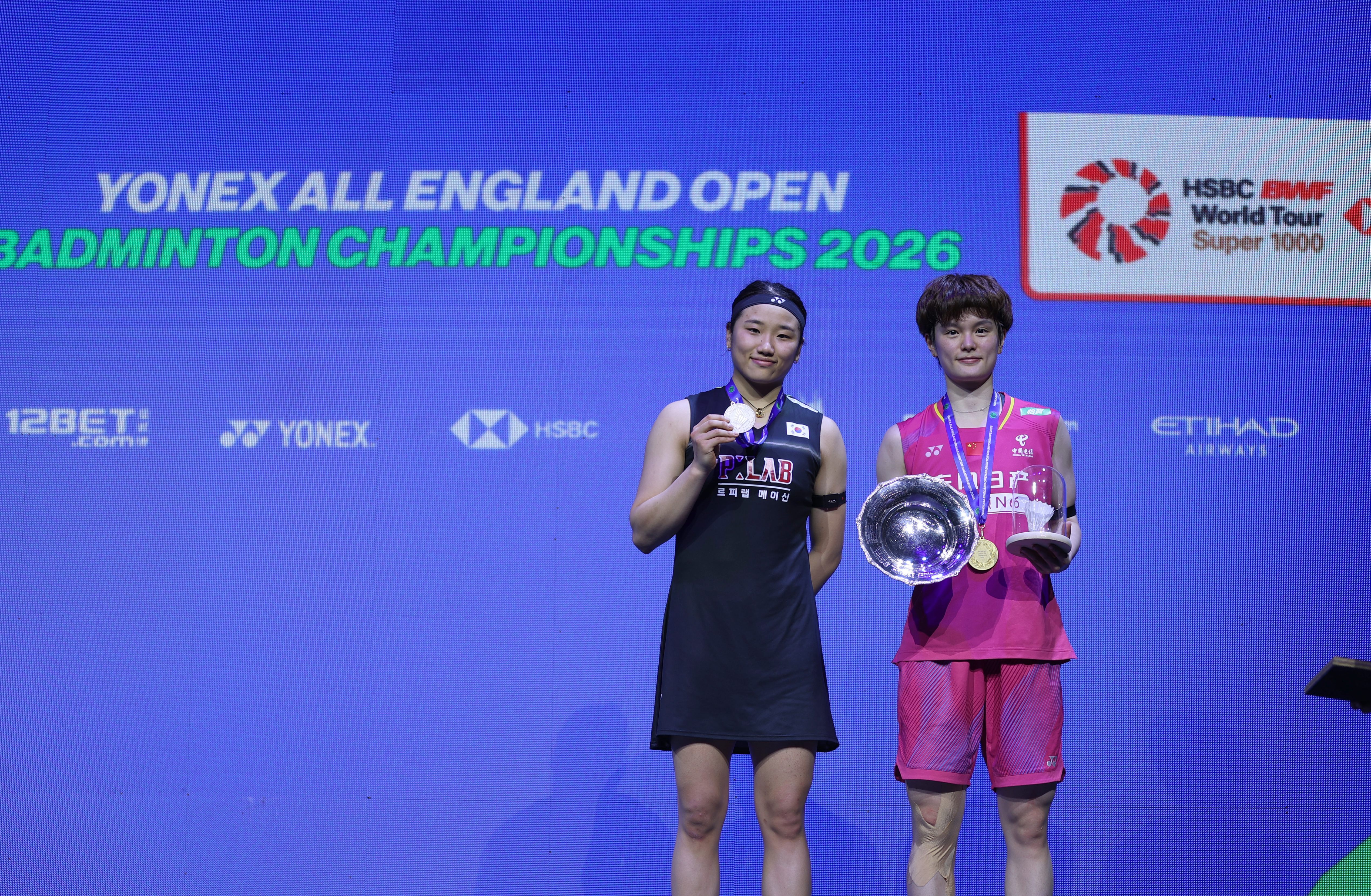 3月9日凌晨,英国伯明翰,王祉怡站在全英赛女单决赛的领奖台上,没有哭。她刚刚以2比0直落两局,击败了那个在过去一年十次将她挡在冠军门外的人——世界排名第一的韩国选手安洗莹,终结了对手跨赛季的36连胜,也终结了自己对安洗莹漫长的决赛十连败。