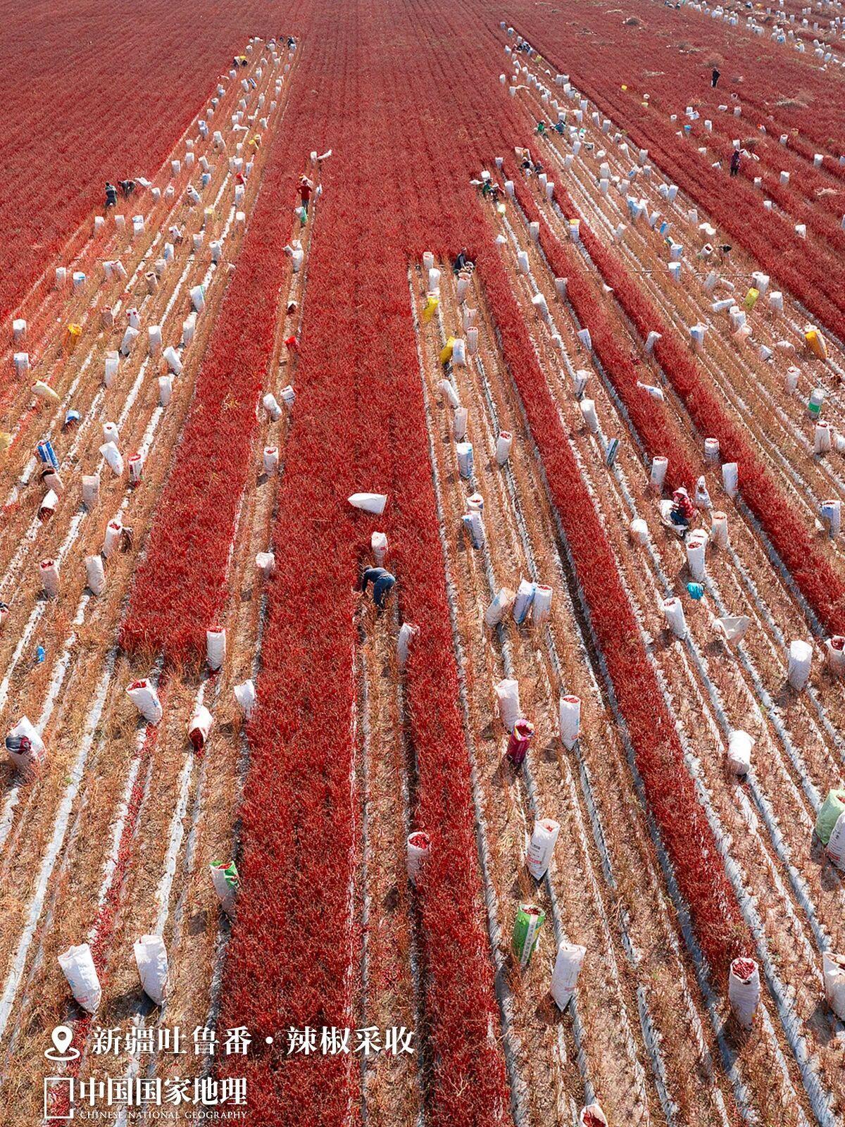 新疆吐鲁番辣椒火热采收