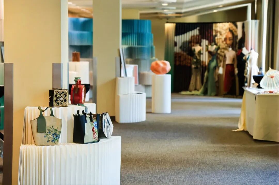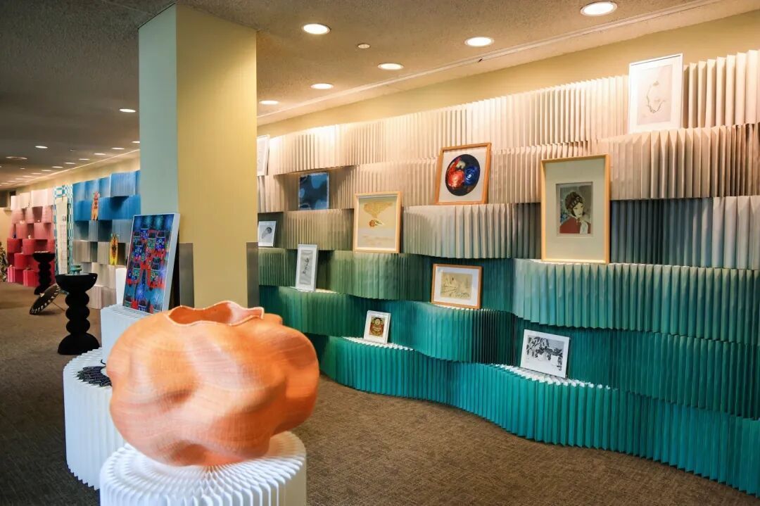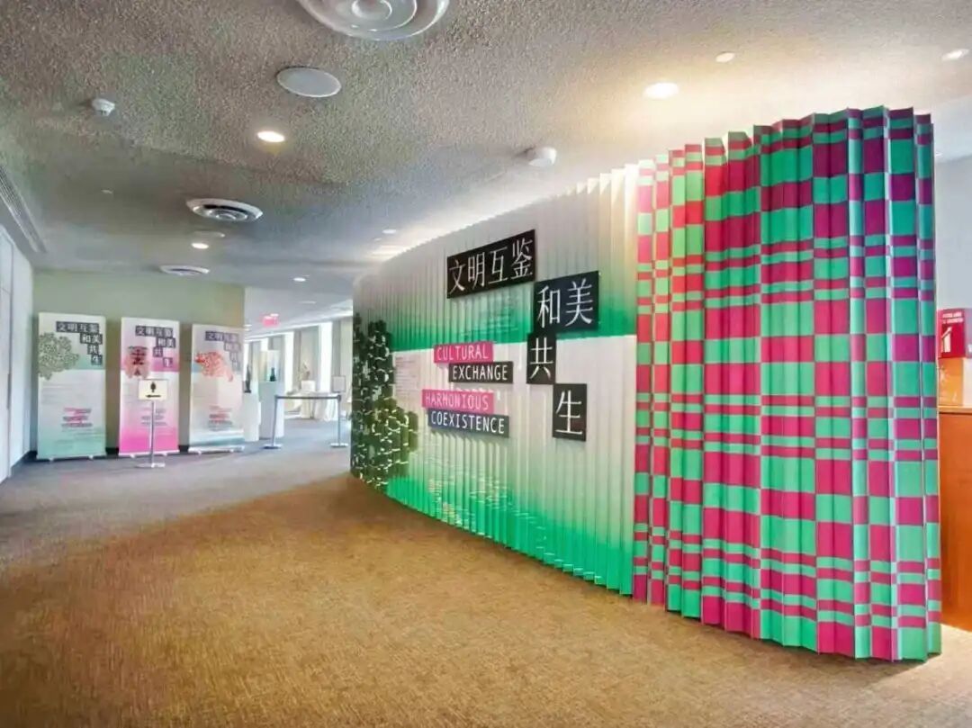 作为此次联合国特展受邀方,“十八纸”将东方色彩与文化图腾融入创作,以契合特展主题的彩印风琴屏风、轻漾屏风为媒,结合圆柱展架、长条展架、阶梯展架等纸艺美陈,在联合国总部4楼展厅中,以轻盈、灵动、至美的特质结构,重新定义了人与空间、人与物、人与自我的关系,构建起了一个东方意境与现代美学的纸艺空间。
