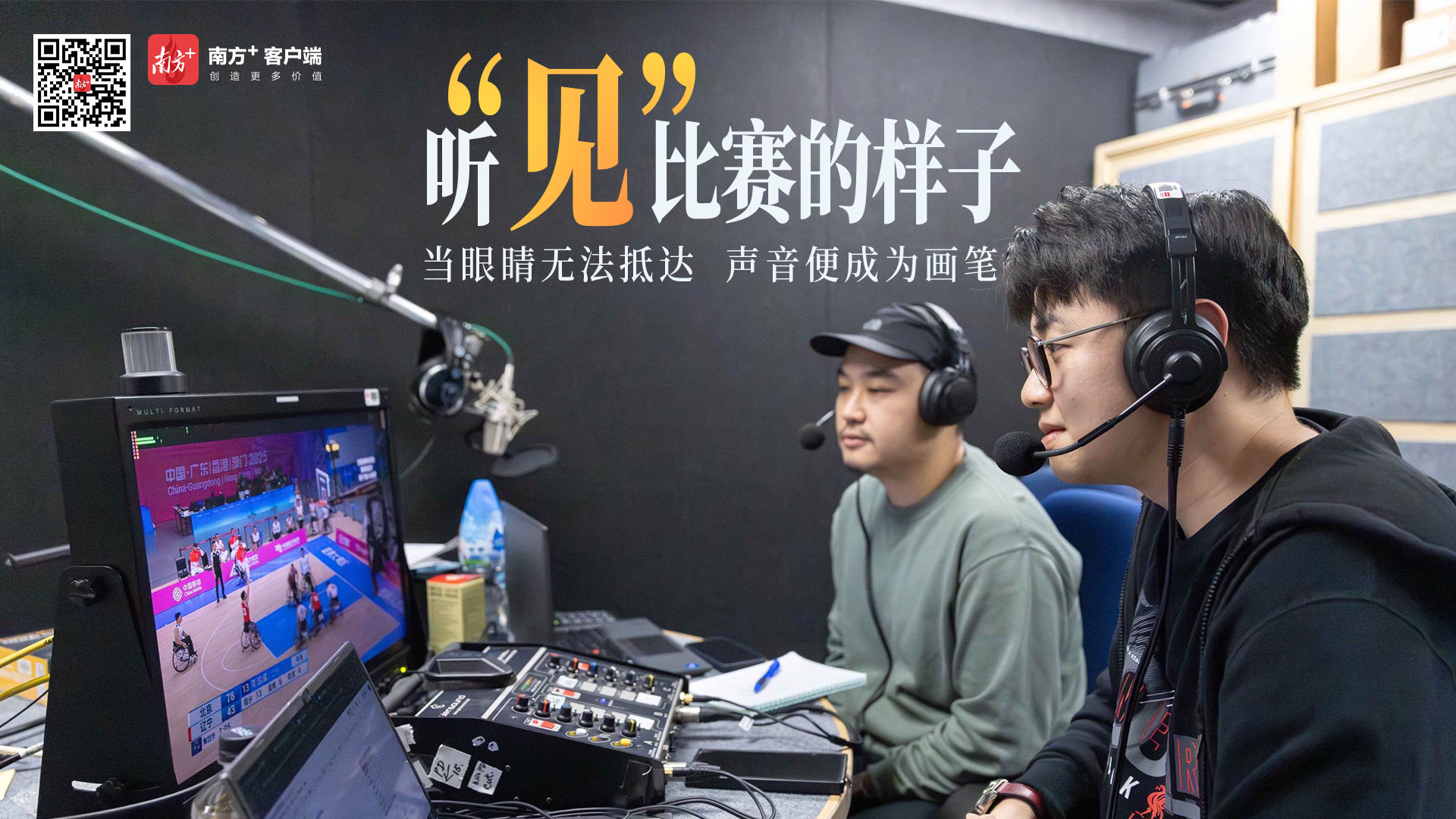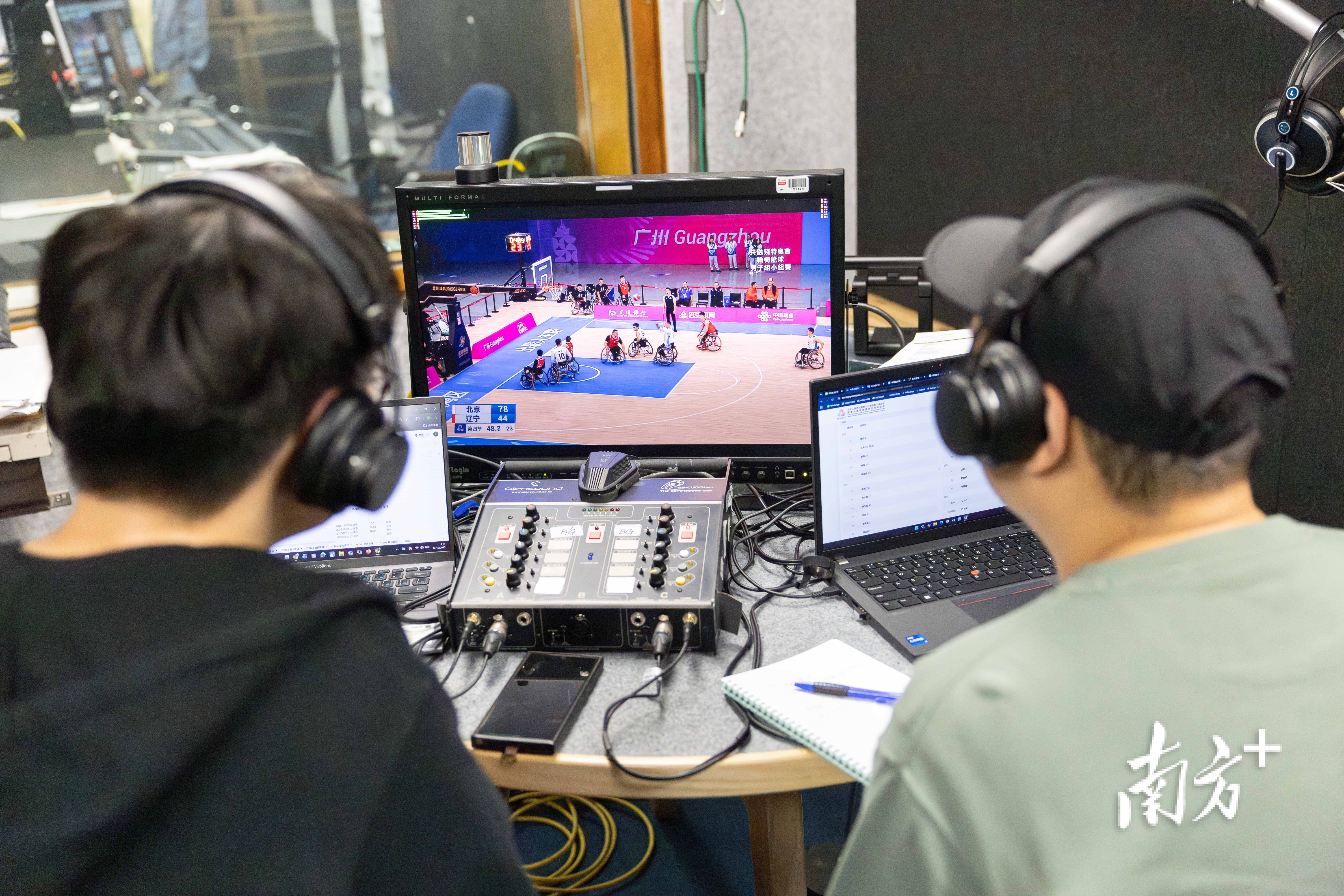 李乐希(右)与何家玮参与到十五运会和残特奥会直播赛事的口述影像工作中。