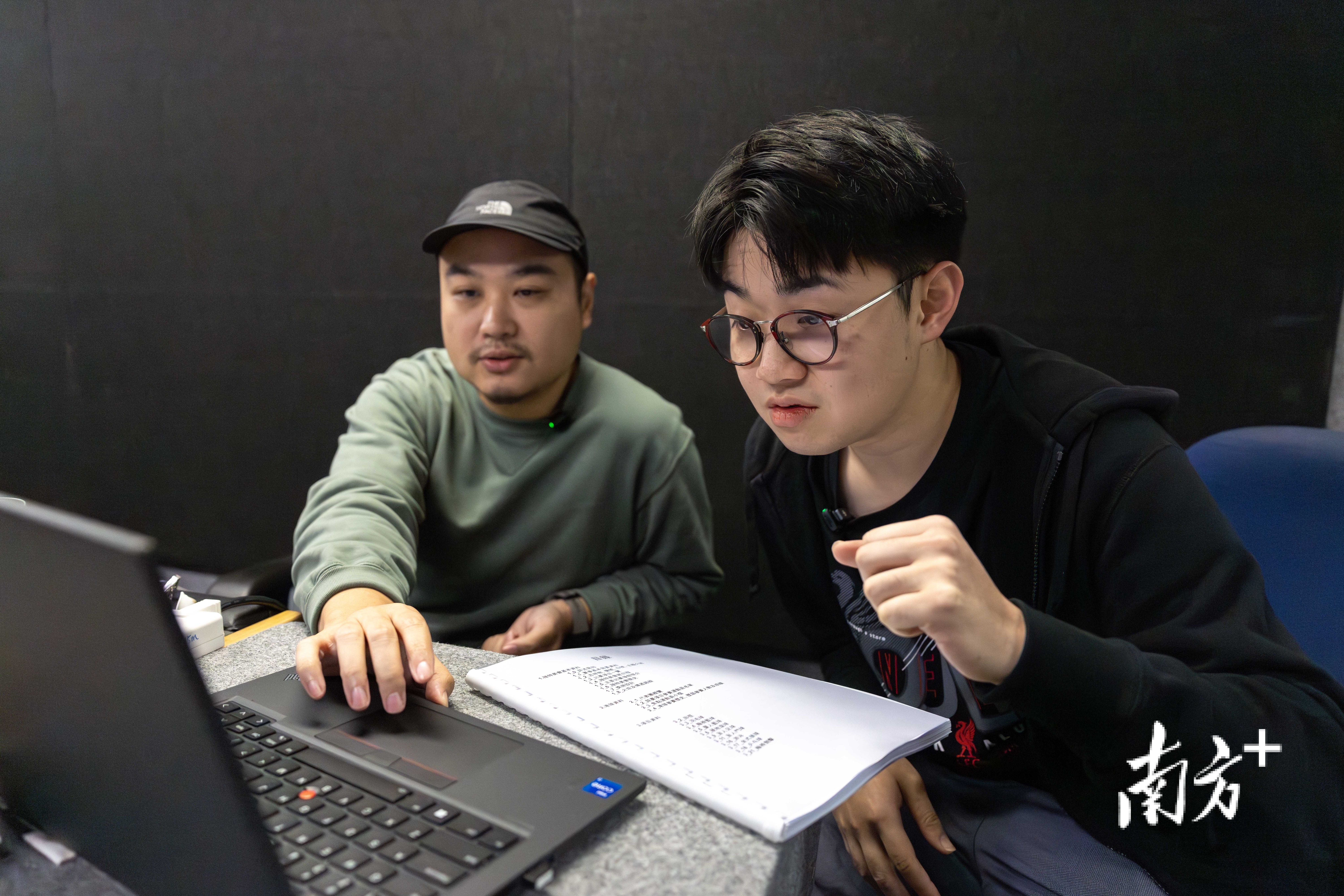 李乐希(右)与何家玮会在直播前预习好比赛的相关资料。