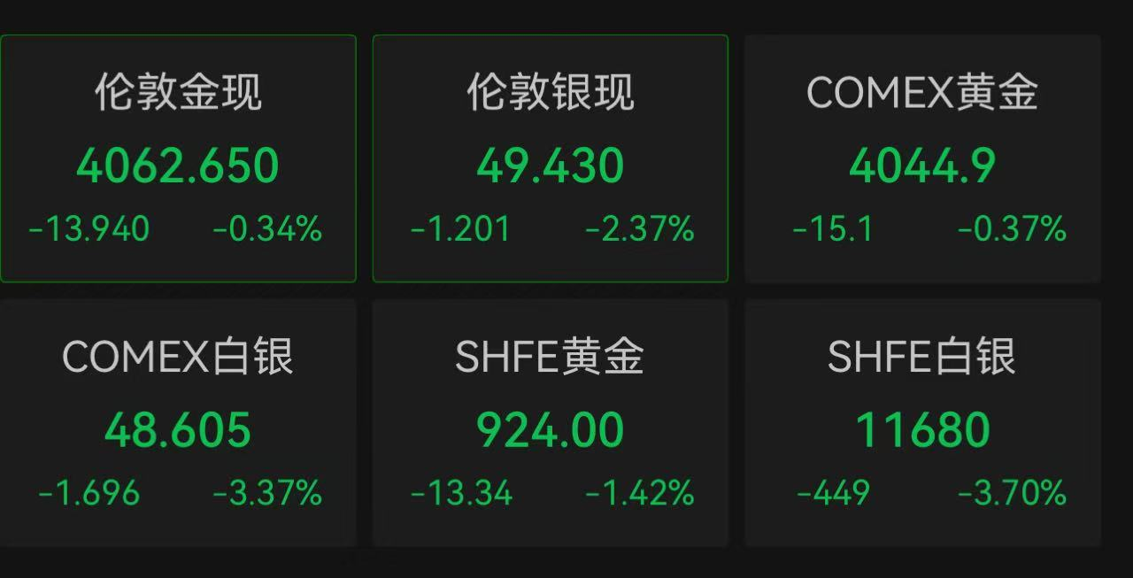 11月21日,伦敦现货黄金价格一度下跌1%,跌破4030美元/盎司。截至发稿,黄金期现货价格均有所回升,伦敦现货黄金报4062.65美元/盎司,跌0.34%;COMEX黄金跌0.37%,报4044.9美元/盎司。