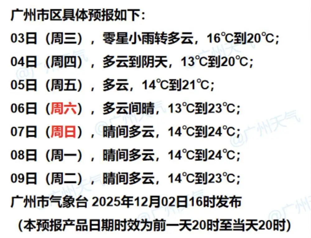 广州市气象台12月2日傍晚市区七天预报 图/@广州天气