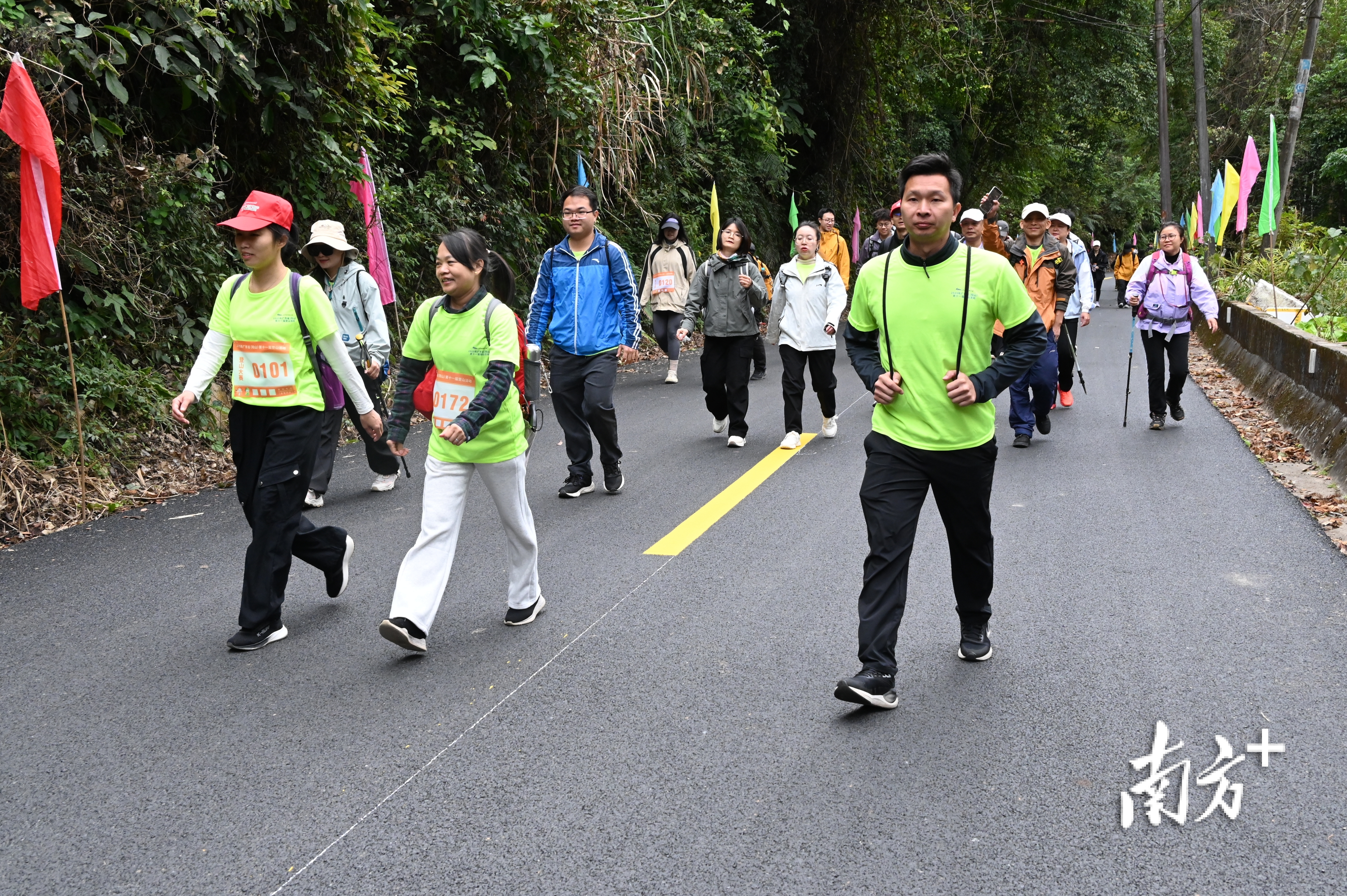 活动现场,参赛选手意气风发,带着竞逐争先的热忱,在青山绿水间迈开矫健步伐。山间欢歌笑语此起彼伏,大家或结伴畅谈、或三两同行,全然沉浸在与自然相拥的惬意中。清新山风裹挟着草木芬芳扑面而来,浓郁的负氧离子沁心入脾,瞬间驱散征程疲惫。沿途风光更是如诗如画——脚下步道蜿蜒向前,身旁古木参天而立,抬眼可见壁立千仞的高山峡谷与怪石嶙峋的喀斯特地貌,钟乳石与峰林在光影间交错,勾勒出独特轮廓;行至中途,时而邂逅山谷间水汽蒸腾的温矿泉,时而遇见清流奔涌、水花飞溅的雷鸣瀑布……在这幅集“雄、奇、险、秀、旷、奥、幽”于一体的自然画卷中,选手们步步探寻、步步沉醉,既感受着登山徒步的酣畅活力,也享受着与天地相融的自在惬意。