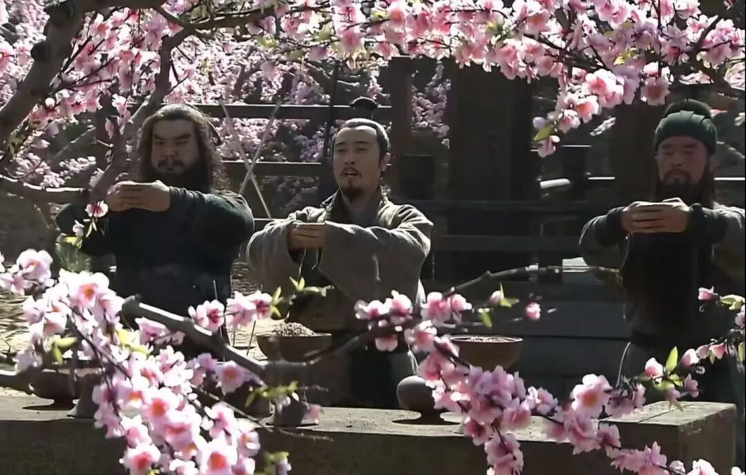 桃园三结义,对天盟誓结为异姓兄弟。来源/电视剧《新三国》截图