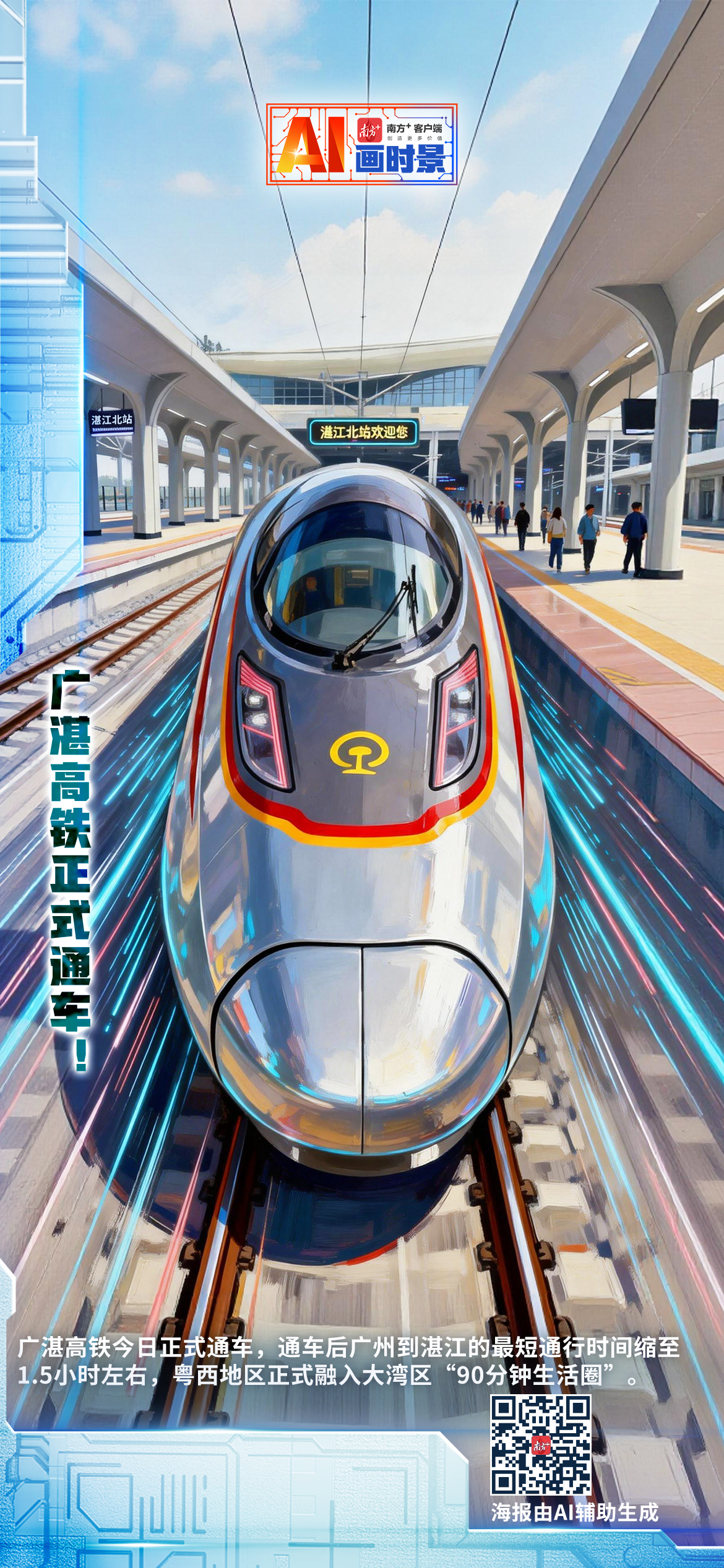 12月22日上午,一趟由湛江北开往广州白云的列车将缓缓驶出,标志着广州至湛江高铁(以下简称“广湛高铁”)正式建成通车,广州白云站至湛江北站最快1小时32分可达,北部湾城市群与粤港澳大湾区时空距离大幅压缩,为区域经济社会高质量发展提供有力支撑。