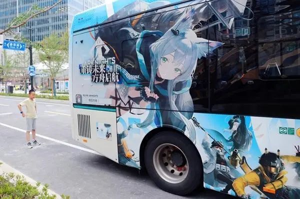 ▲7月19日,上海,公交集团与游戏公司联名推出的一辆“公交痛车”驶过街头。该定制线路连接徐汇元宇宙街区“元界”内的商业综合体及文化地标。视觉中国供图