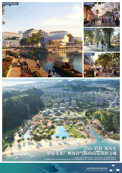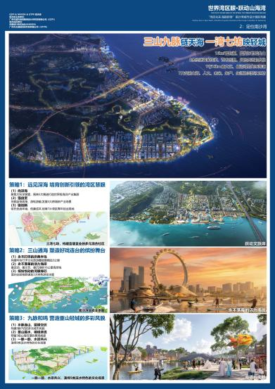设计方案介绍:方案以“世界湾区眼跃动山海湾”为愿景定位,提出5大方面设计策略,旨在充分发挥南沙湾“山-海-港-城-产”资源,将南沙湾打造为盘活内湾要素联动的交汇中心。