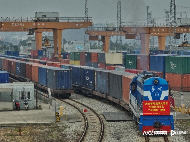 广州东部公铁联运枢纽发出粤港澳大湾区2026年首列中欧班列。南都N视频记者 黎湛均 摄