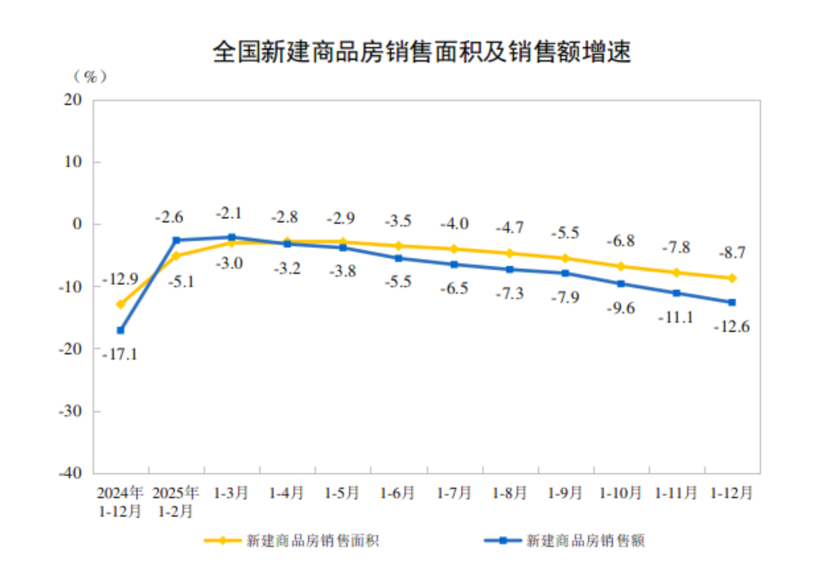 销售端同样承压。2025年全国商品房销售面积下降8.7%,销售金额降幅达到12.6%。“以价换量”成为开发商无奈的选择,全国新房均价跌破万元,同比降幅4.1%。