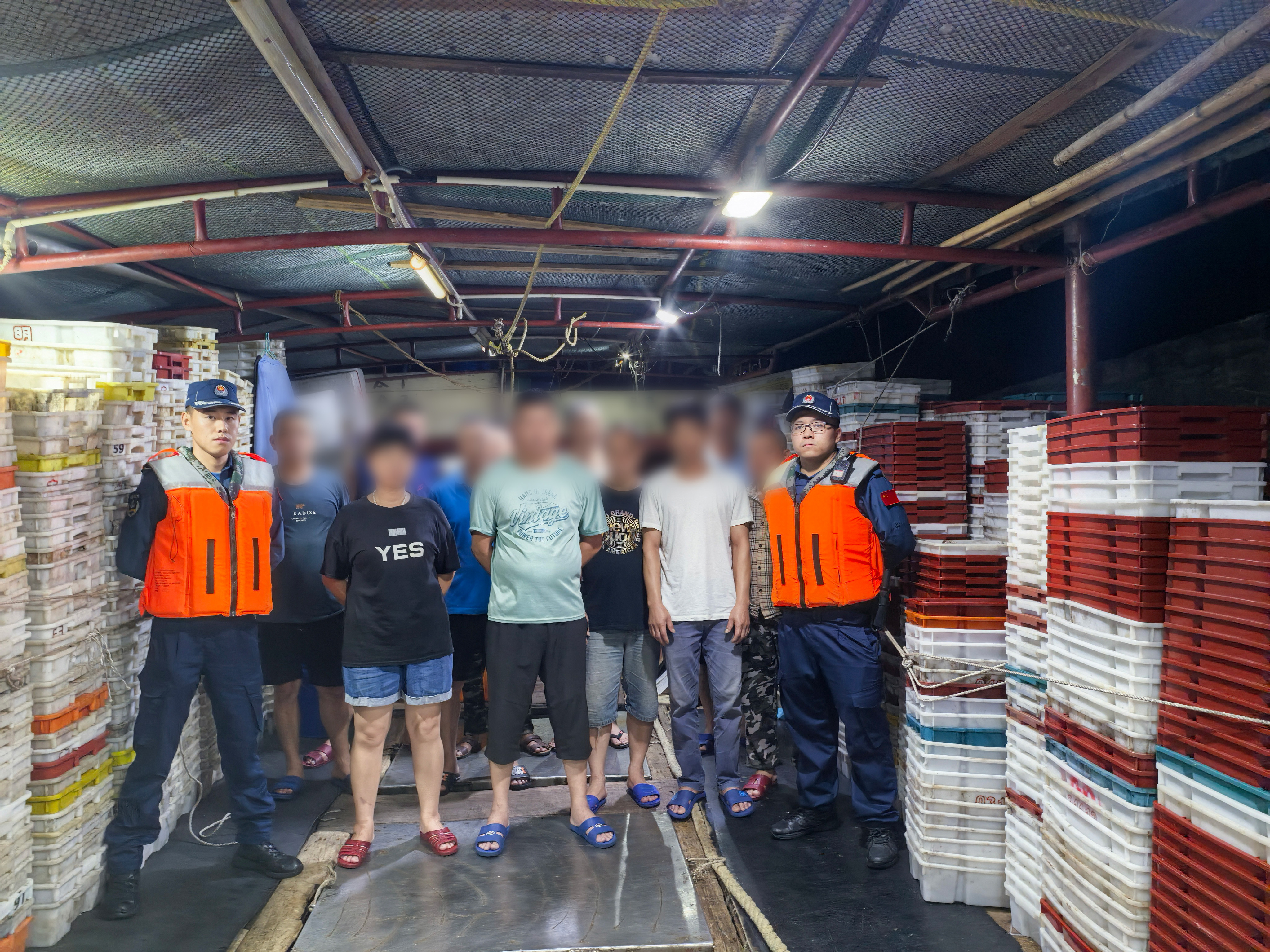 2025年7月3日,渔船休渔期顶风作案,阳江海警现场查获渔获物2万余斤。