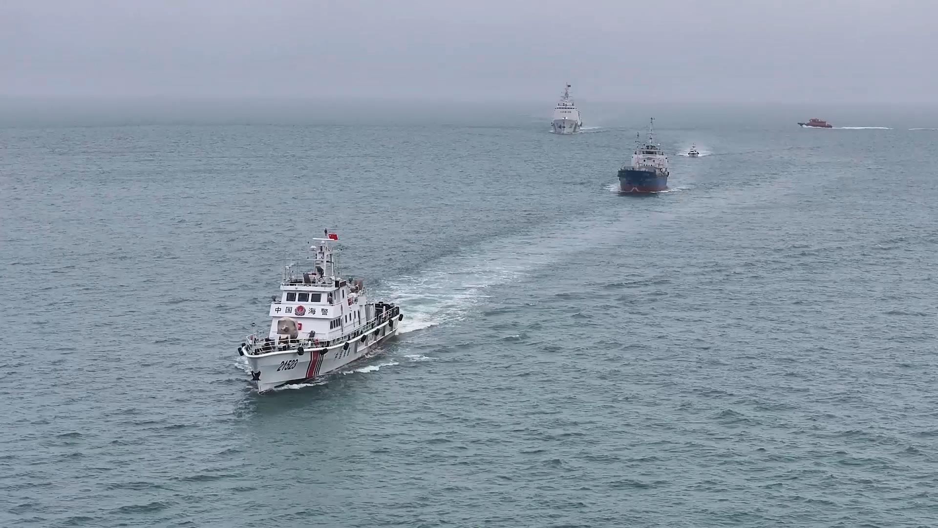 2025年3月2日,海警执法员押送“2·24特大海上走私毒品案”涉案船只返回港口。