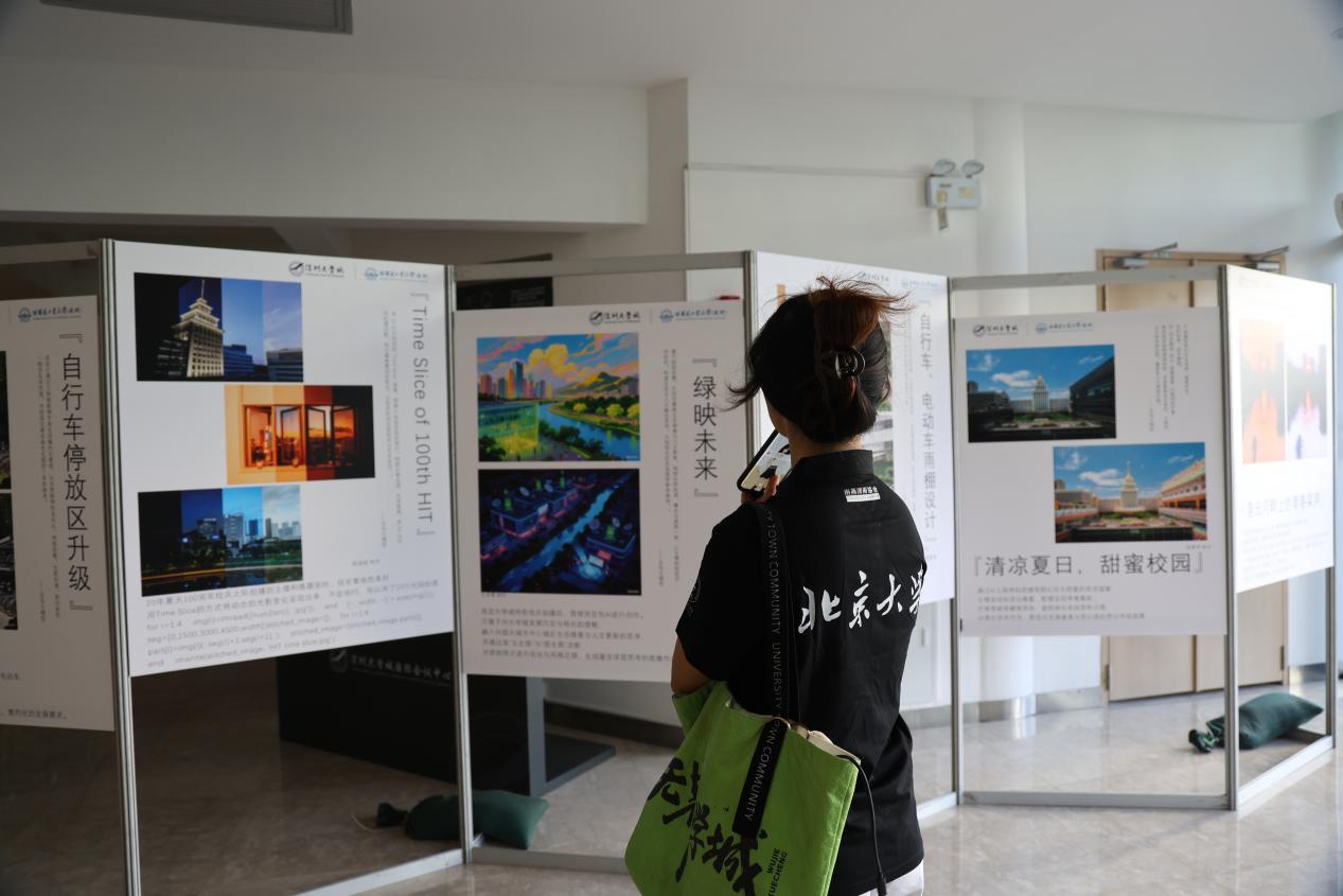 同步开展的“无界大学城”摄影展,在这些参展作品中,既有大沙河生态长廊的四季风光——春日的落英、秋日的碧水,展现“山、水、城交融”的生态格局;也有各位参赛者发挥脑洞,利用AI设计出充满未来科技感的深圳大学城图景,让大家对深圳大学城未来的发展充满想象。